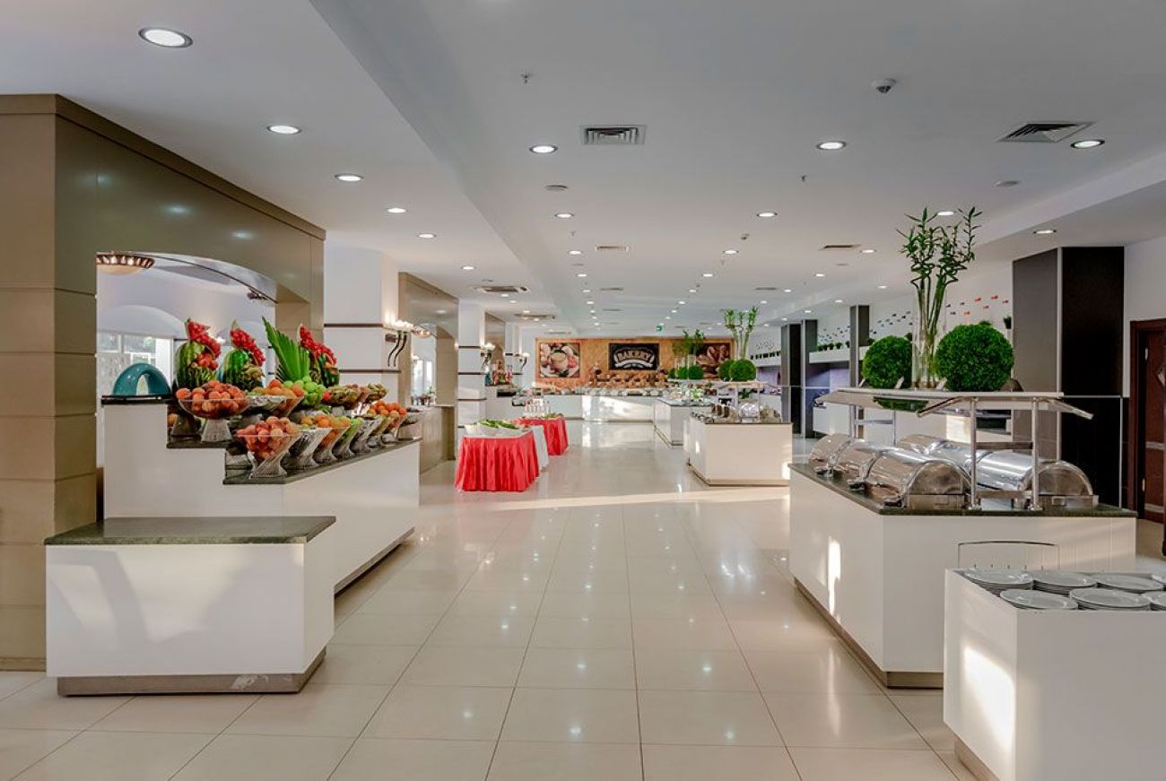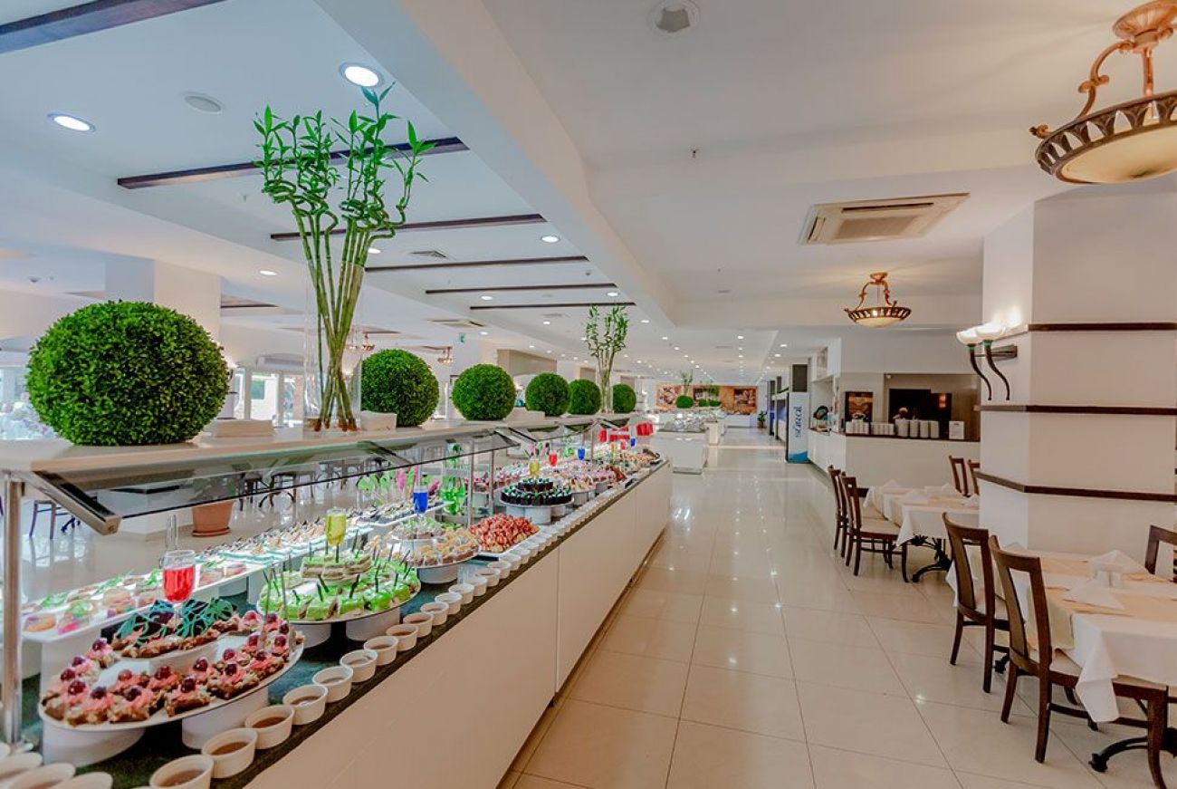 система всичко включено - закуска, обяд и вечеря на шведска маса, чаена пауза (чай, кафе, сладки, курабии), сладолед в определени часове, услугите на Special Restaurant (с предварителна резервация), нощни закуски, наливни алкохокни и безалкохолни напитки местно производство
