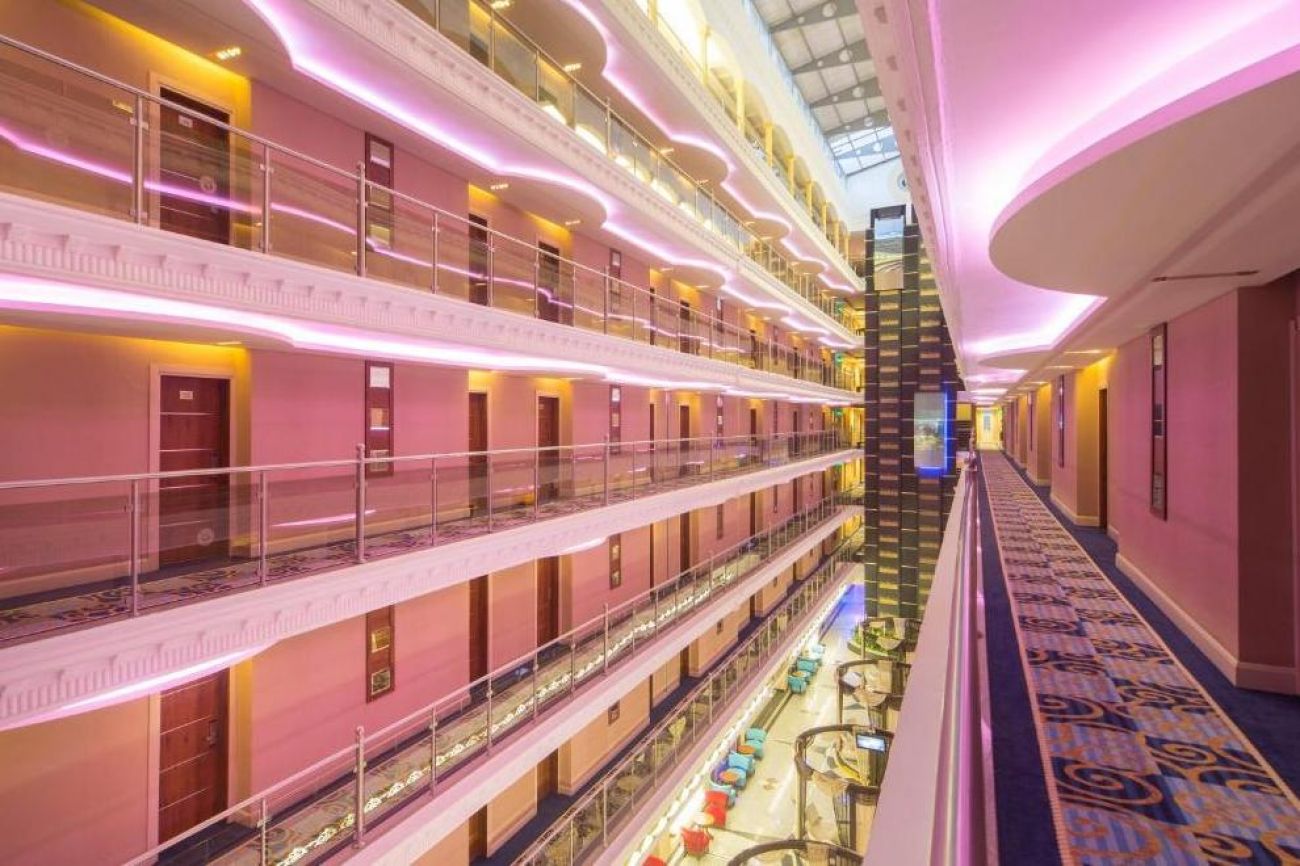 Хотелът е с обща площ 29 000 кв.м и се състои от две 6-етажни сгради. Голяма част от 391 стаи са с директен или частичен изглед към морето. 2 открити басейна, закрит басейн, 3 водни пързалки, ТВ-зала, библиотека, лекарски кабинет (раб. време: 2 часа на ден), SPA-козметичен салон, фризьорски салон, магазини, пералня, обмяна на валута, rent-a-car, паркинг, 5 конферентни зали (за 25, 40, 120, 300 и 600 чов.).