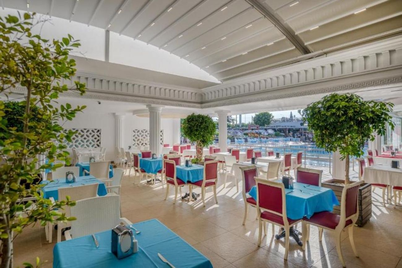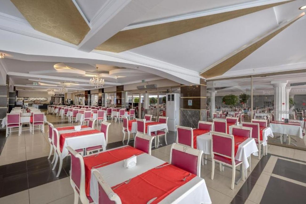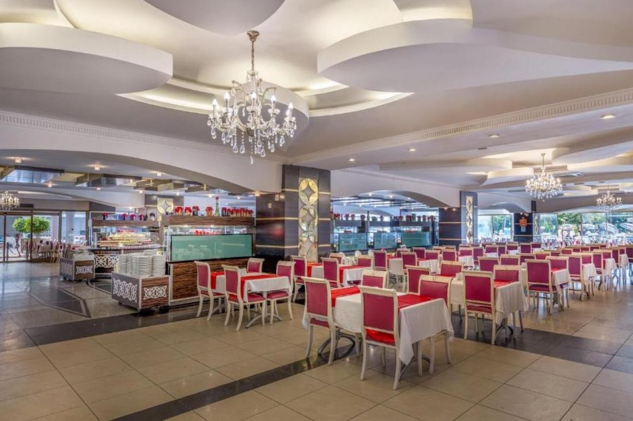 На разположение на гостите е основен ресторант, отворен за закуска, късна закуска, обяд, вечеря и късна вечеря. На плажа се предлагат закуски от 12:30-16:30 ч. Три а`ла карт ресторанта: турски, италиански и рибен. Разнообразни напитки се поднасят в 5 бара: бар при басейна, бар на плажа, Flora Bar - в градината, бар в ресторанта и диско бар.