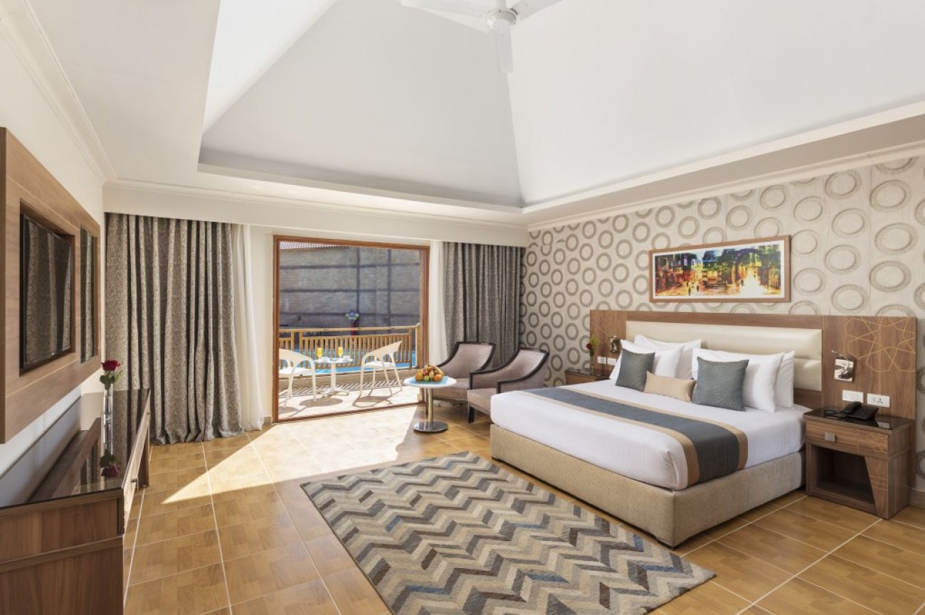 Този хотел предлага на своите гости модерна почивка в просторни стаи, заобиколен от красива територия с развита инфраструктура и голям избор от ресторанти и барове. Но основната атракция на хотела е най-популярният воден парк в Шарм ел-Шейх. Това ще бъде идеално място за активен младежки и семеен отдих с деца.