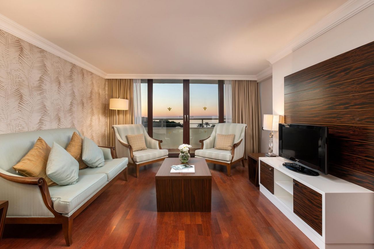 Хотелът разполага с общо 360 стаи, от които: 182 Standard Garden View Room (28 m2), 44 Standard Garden View Room without Balcony (31 m2), 6 Family Terrace Suite with Jacuzzi (63 m2), 2 Jacuzzi Suite (58 m2), 6 Duplex Suite (60 m2), 15 Family Room (61 m2), 58 Comfort Club Room (28 m2), 3 Superior Family Suite (90 m2), 13 Club Family Room (44 m2), 8 Superior Room (58 m2), 10 Orient Suite with Jacuzzi (92 m2), 9 Sultan Suite with Jacuzzi (86 m2), 3 Residence Villa (178 m2).