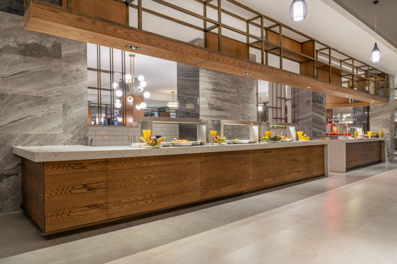 Хотелът има 1 основен ресторант, в който закуска, късна закуска, обяд, вечеря и вечеря се сервират на открит бюфет. Разполага с 3 а`ла карт ресторанта: рибен, италиански, азиатски. Освежаващи напитки и закуски се поднасят в 5 бара: лоби бар, снек бар, бар при басейна, Спорт бар и Roof Bar. Има и сладкарница.