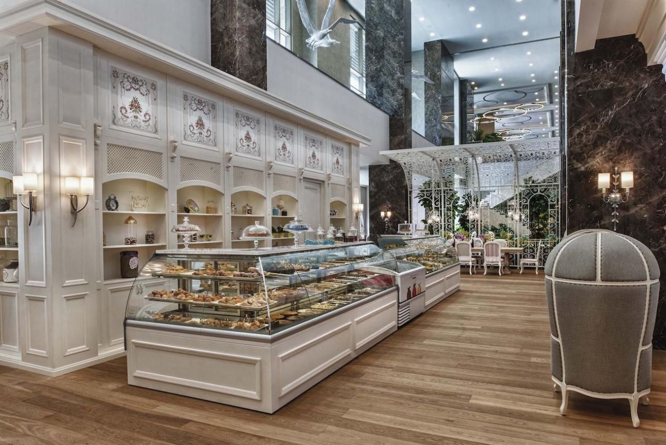 2 ресторанта (единия от тях е за гости над 15 год.), 4 ресторанта a-la-carte (турски, италиански, далекоизточен, рибен, с предварителна резервация, резервацията се заплаща)