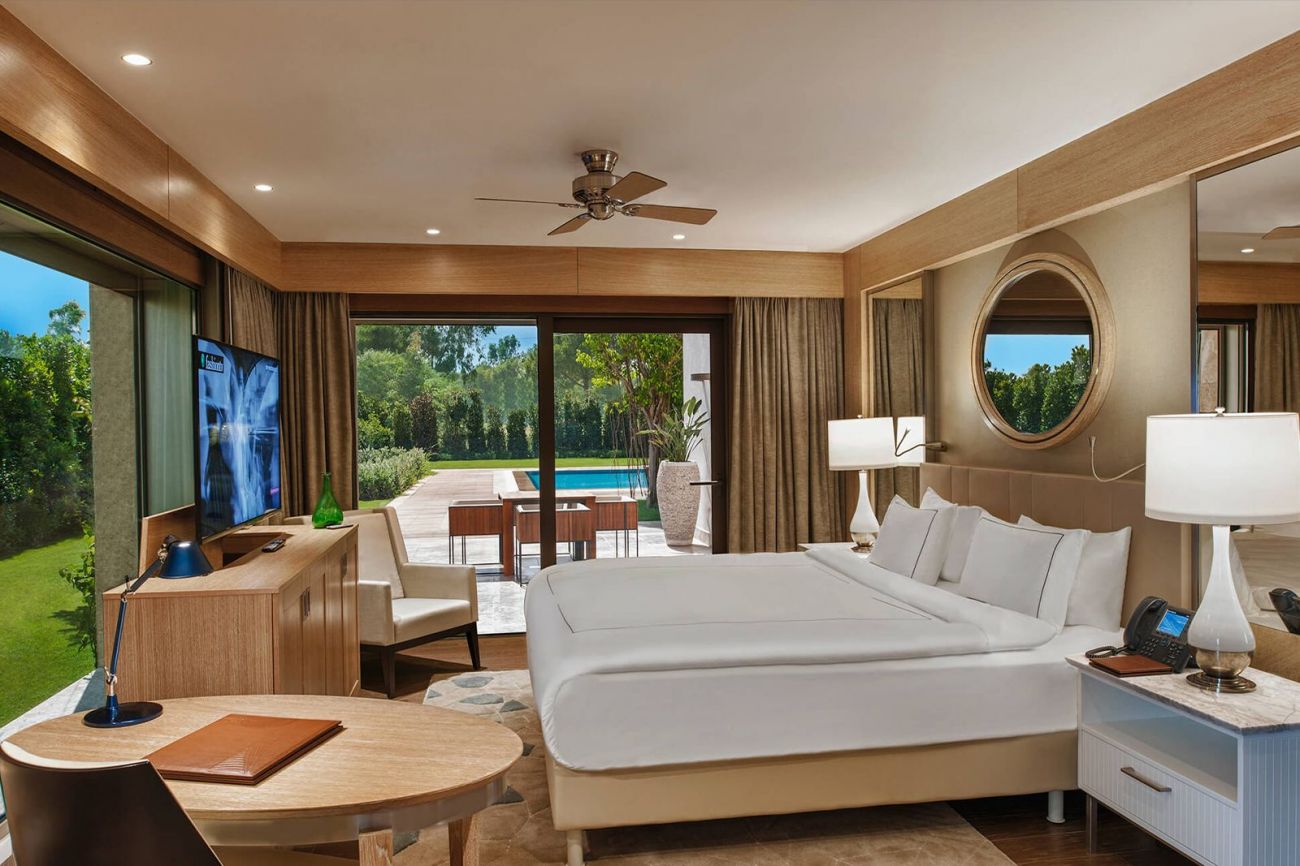 5 четиристайни Carya Golf Villa (хол с мека мебел, 3 спални с врата, 3 бани: 1 с джакузи и душ, 2 само с душ, голяма тераса (40 м2), макс. 6+1 чов., 250 м2, VIP-обслужване)