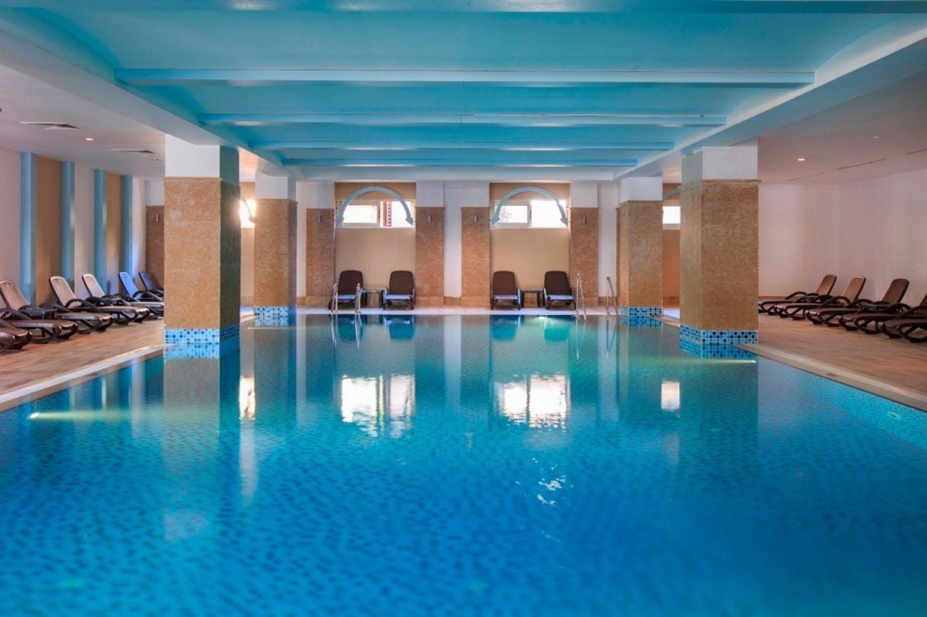 Собствен пясъчен плаж на около 400 м от хотела, автобус до плажа тръгва на около всеки 10 минути. 2 открити басейна (неотопляеми). 1 закрит басейн, отопляем от ноември до април, 200 кв.м, работно време 08:00-19:00 ч. 3 водни пързалки, работно време: 10:00-12:00 ч. и 14:00-16:00 ч. Работата на аквапарка зависи от метеорологичните условия.