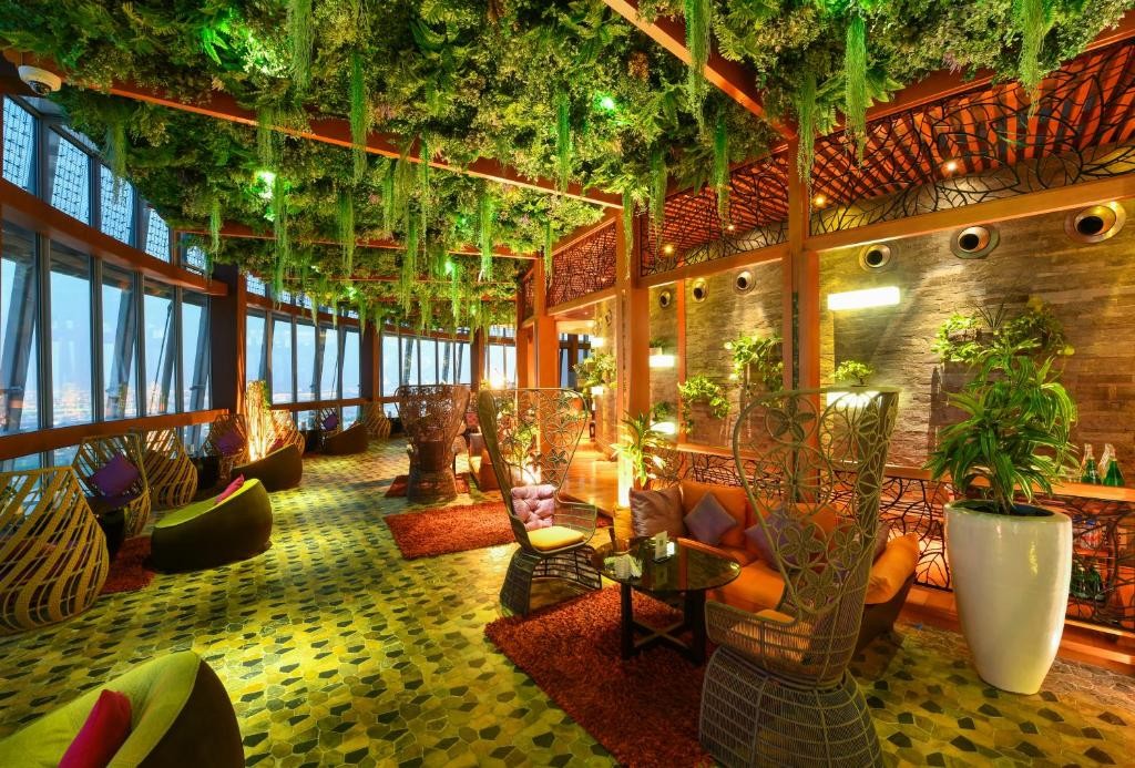 Този дизайнерски хотел, разположен в сграда с форма на факла в Доха, разполага с въртящ се ресторант и панорамна гледка към града. Включва инфинити басейн, фитнес клуб и салон за красота.