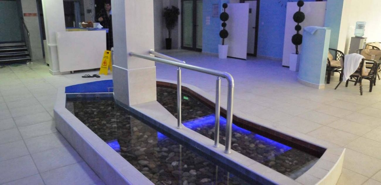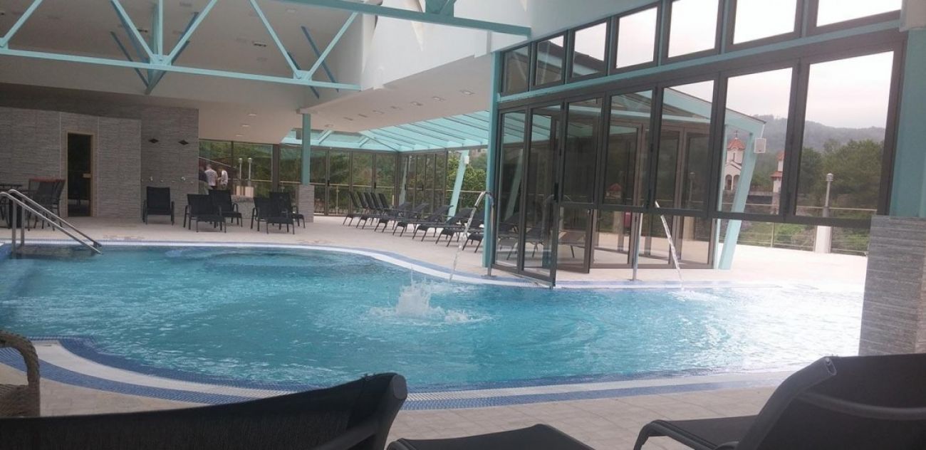 СПА център: Уелнес центърът на хотела предлага вътрешен и външен басейн, сауна, парна баня, джакузи, тепидариум – топло помещение с подово отопление и подгреваеми седалки, солна стая.