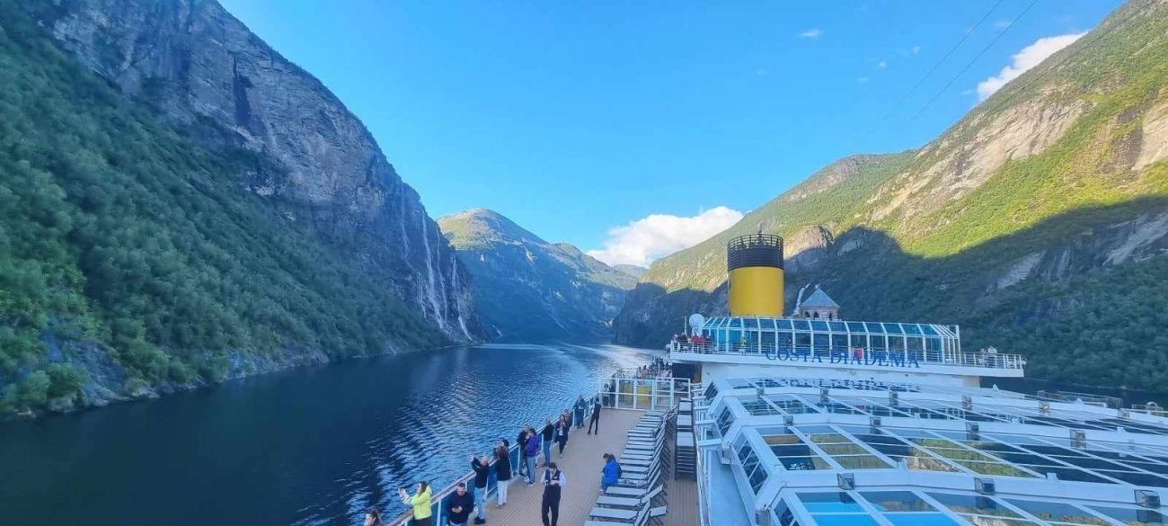 Между 10.00 и 11.00 ч. корабът ще плава през един от най-красивите фиорди в Норвегия – Гейрангер. По околните стръмни склонове, издигащи се над километър над водата ще видим водопада Седемте сестри. Срещу игривите води на седемте потока се намира друг водопад, наречен закачливо Ухажорът. Гейрангер е включен в листата на ЮНЕСКО. Престой в Гейрангер от 11.30 до 19.30 ч. Тук може да изберете между различните предложения на кораба: обиколка с каяк из фиорда, панорамна екскурзия с автобус, екскурзия с хеликоптер или велосипед.