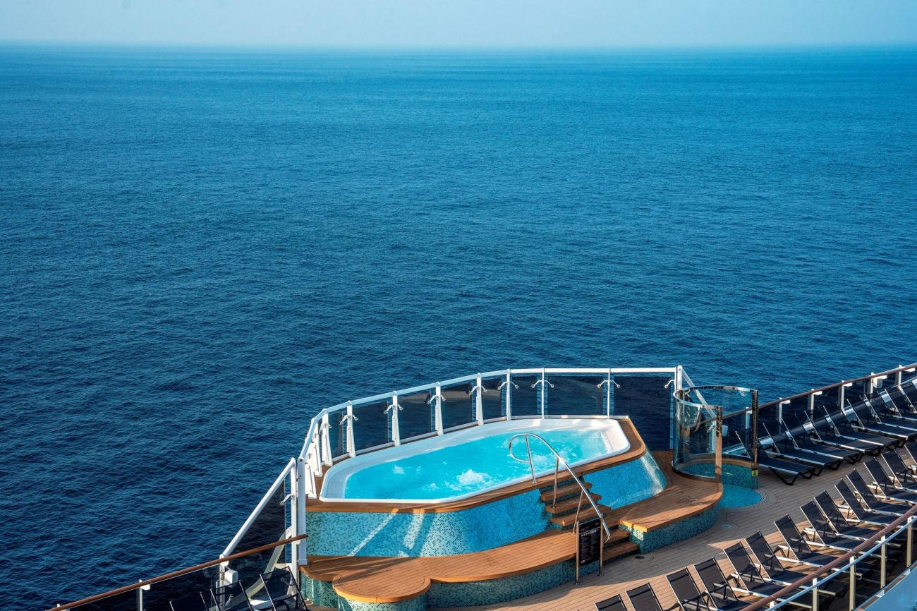 Днес сме на вода и ще разполагаме с цял ден, за да разгледаме нашия плаващ хотел. Слънчевата палуба ни очаква, а забавленията на борда са многобройни.