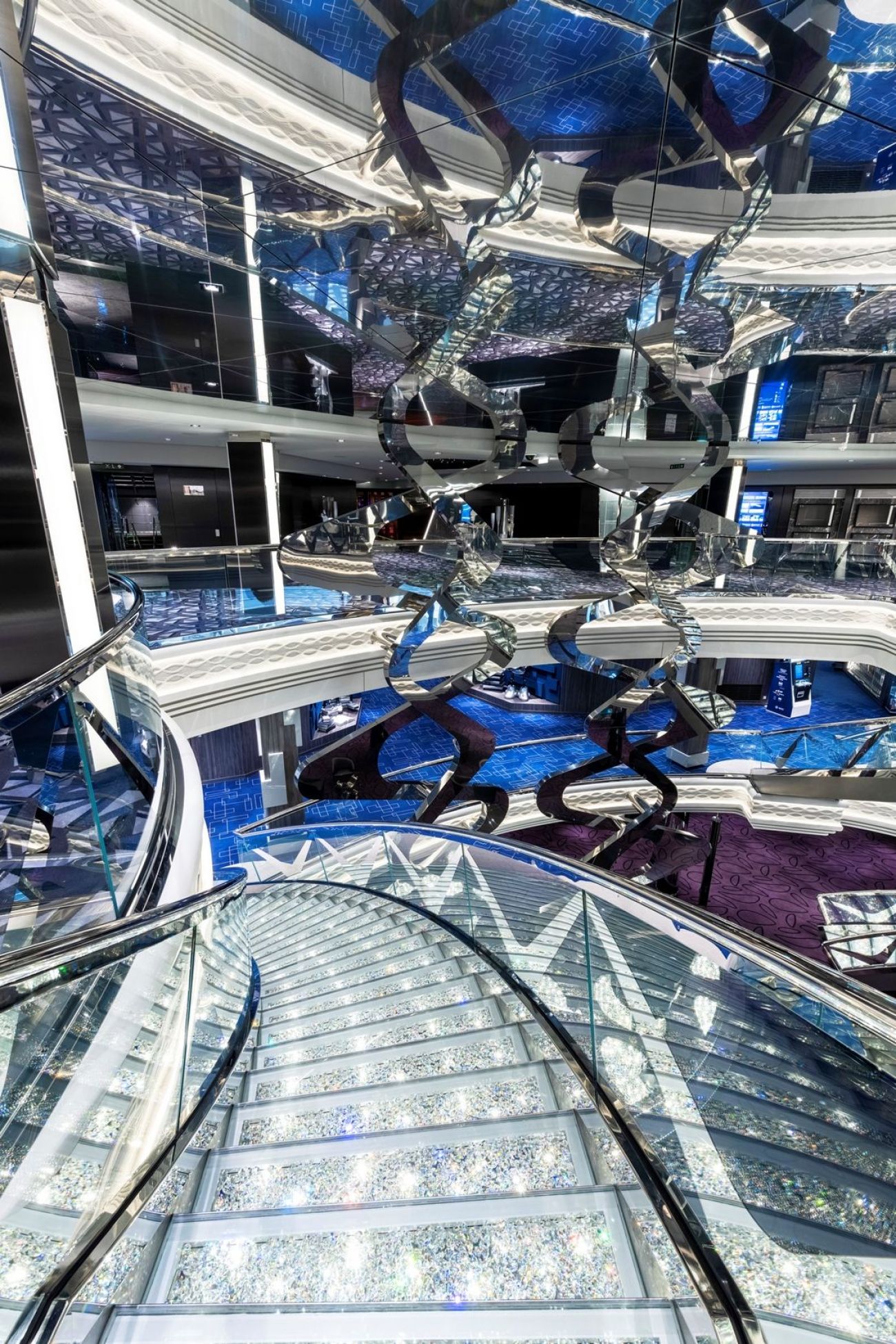 Класическата вече за корабите от флотилията вътрешна променада с LED таван, обградена от ресторанти и магазини, отново се превръща в център на социалния живот на борда, както и в сцена на различни партита и събития.