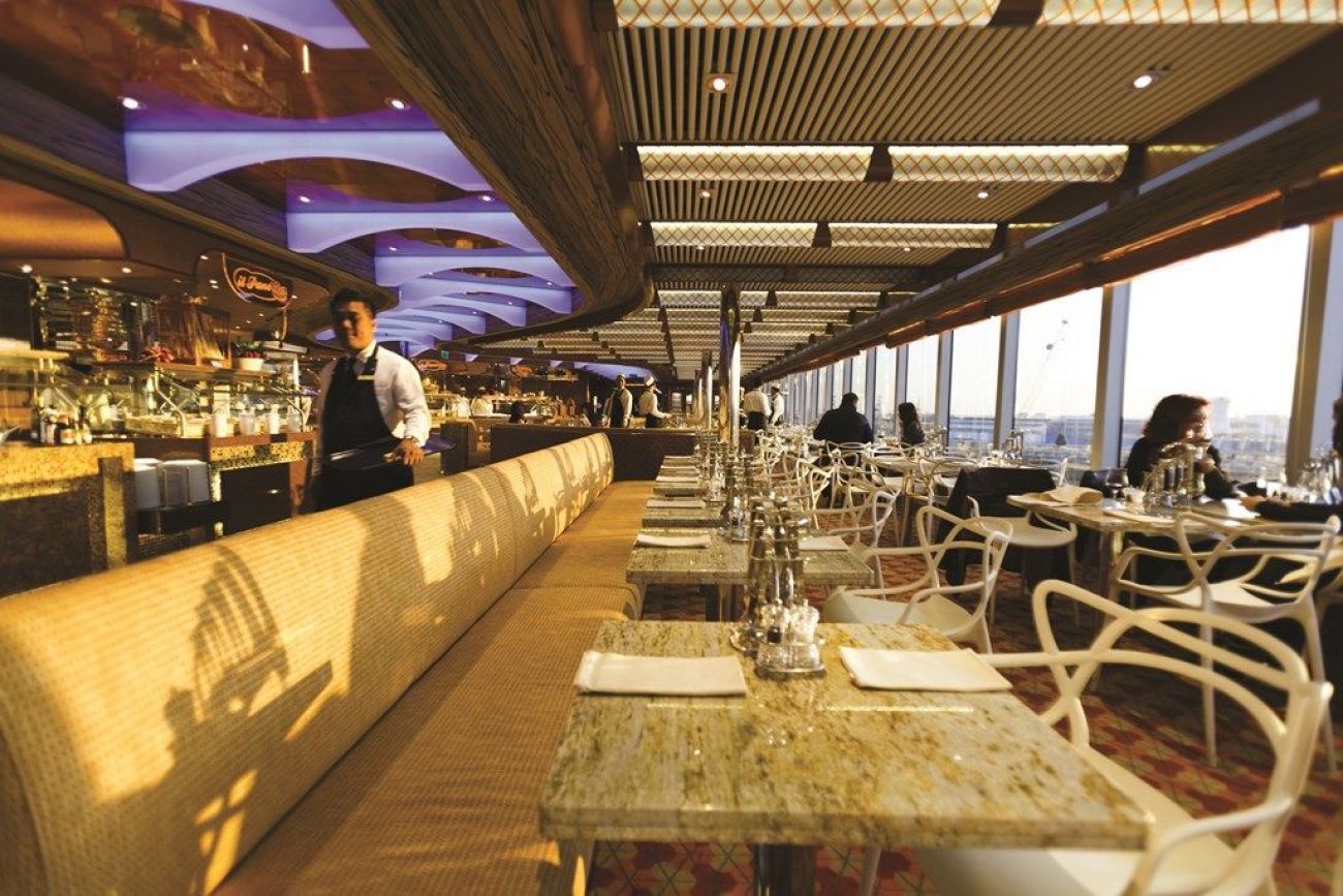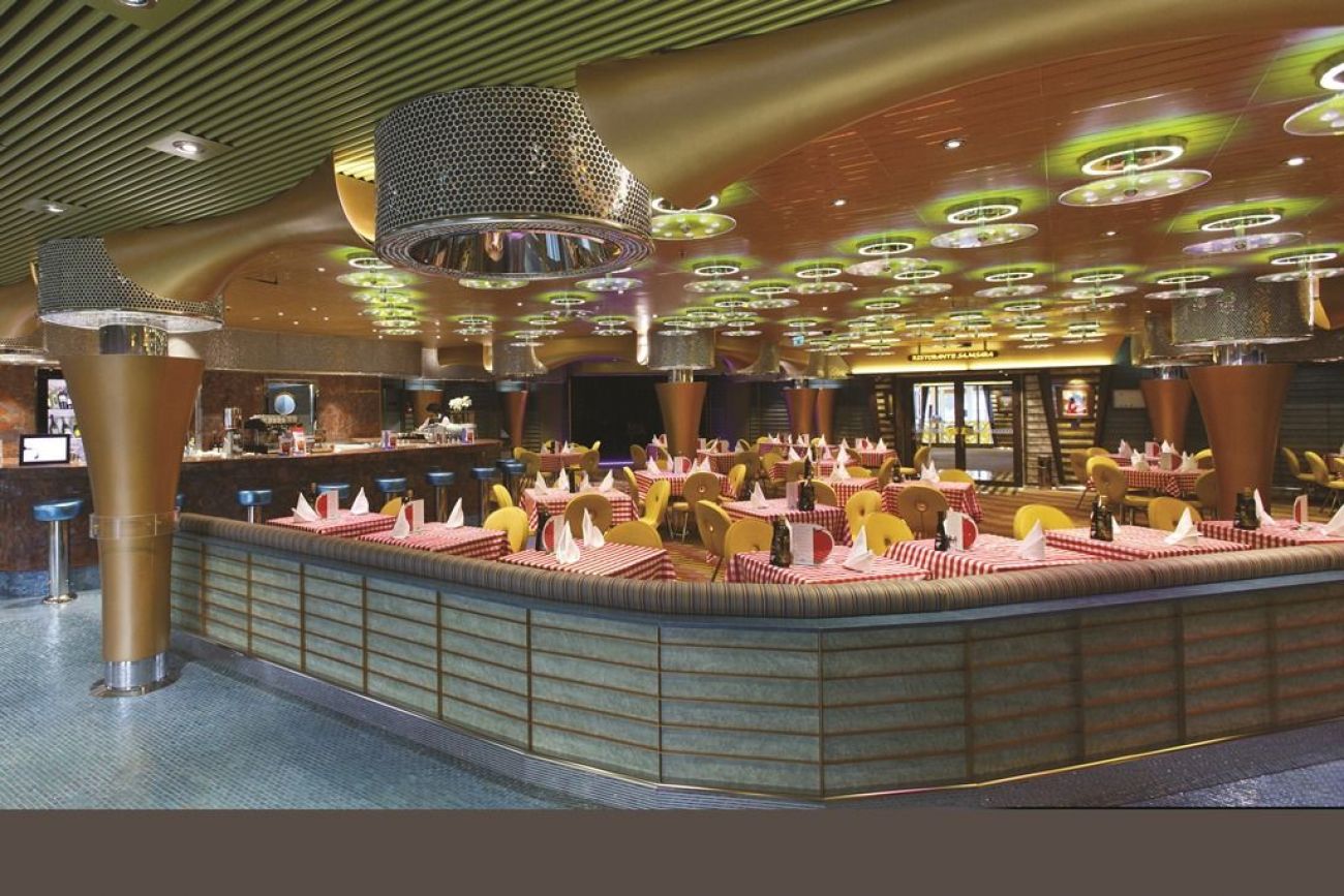 На борда има 8 места за хранене и 11 бара. Между тях основен ресторант, пицария, бюфет ресторант на самообслужване, джелатерия Амарило с италиански занаятчийски сладолед, винотека, немска бирария, ресторант Тепаняки с японска кухня.