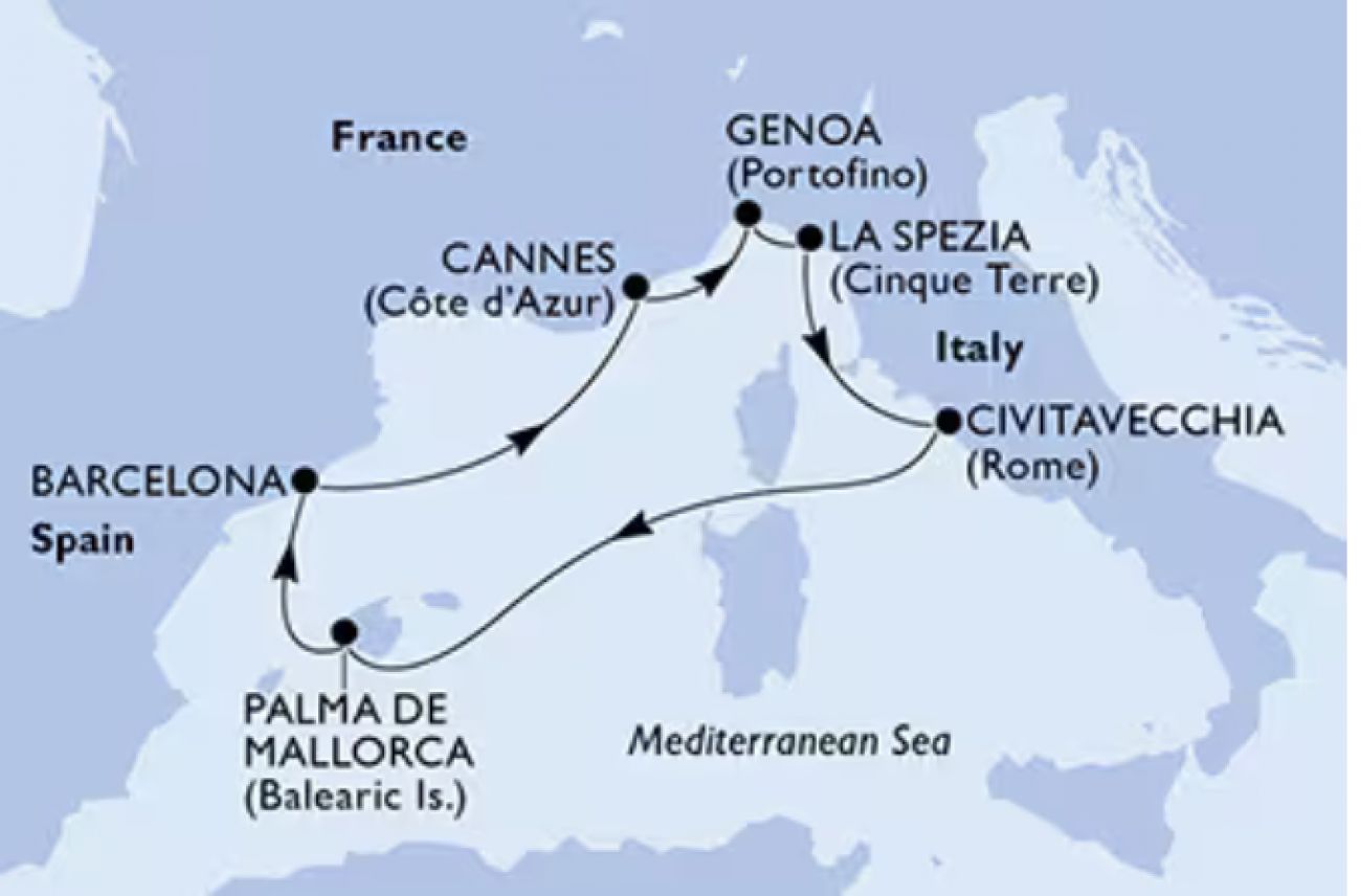 Civitavecchia (Рим) - Palma de Mallorca - Barcelona - Cannes - Genoa (Portofino) - La Spezia (Cinque Terre) - Civitavecchia (Рим) Дати на отпътуване