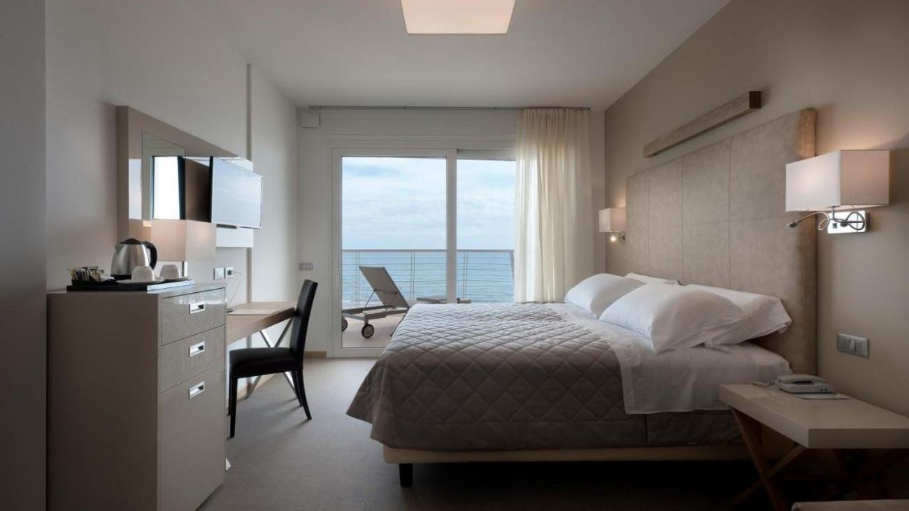 Panorama View представлява най-високото ниво на релаксация и комфорт за вашата почивка в Йезоло.Двойна стая с диван; безплатен Wi-Fi, климатик, баня с тоалетна, душ, сешоар, халат, чехли, хладилник, електрическа кана, сейф, сателитна телевизия.При 4 човека се добавя двуетажно легло.Голяма тераса с джакузи и изглед към морето: 60-64 кв.м.