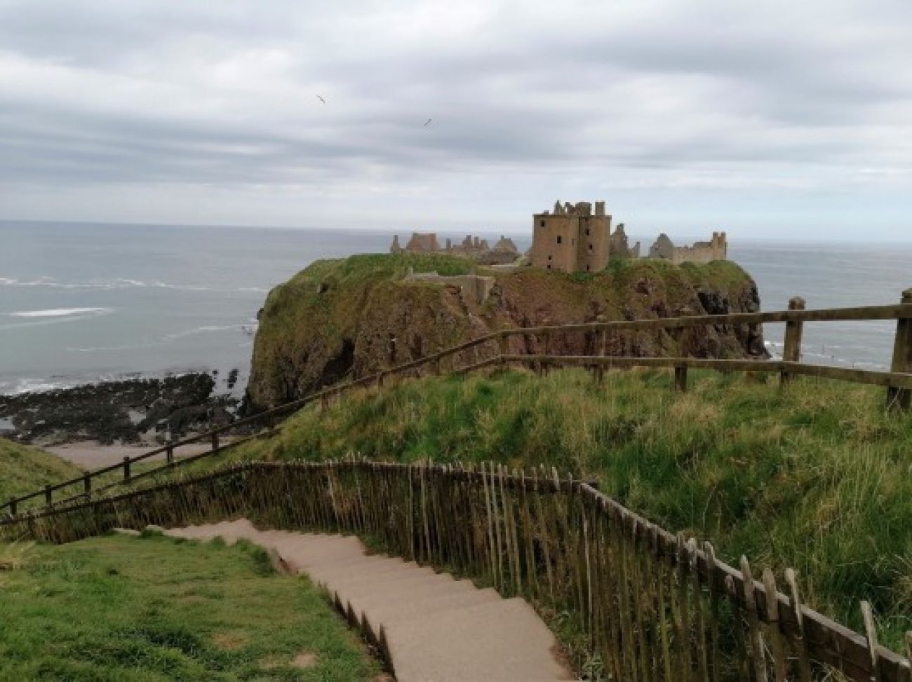 Продължаване към замъка Дънотр, кацнал дръзко на висока скала, надвиснала над абърдийнското крайбрежие, с репутация на един от най-привлекателните в Шотландия. Неслучайно силуетът му се е превърнал в декор на много холивудски филмови продукции - включително „Игра на тронове“. Руините му са впечатляващи, гледките - зашеметяващи. Прибоят на Северно море се разбива в почти отвесните му скали от три страни, превръщайки го в максимално защитена територия от времето на пиктите, в непревземаема крепост за викингите и в сигурно скривалище за кралските регалии по времето на Оливър Кромуел и неговата Република. Пристигане в Абърдийн - град среща: среща на две реки, среща с „гранитното лице“ на средновековна Шотландия, среща с мъдростта на абърдийнския университет, с детството на Байрон и първите творчески опити на Ани Ленъкс. Настаняване в хотел. Вечеря. Нощувка.