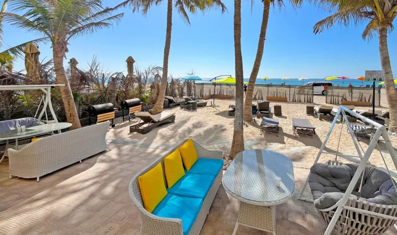 Собствен пясъчен плаж. Чадъри и шезлонги на плажа - безплатно.