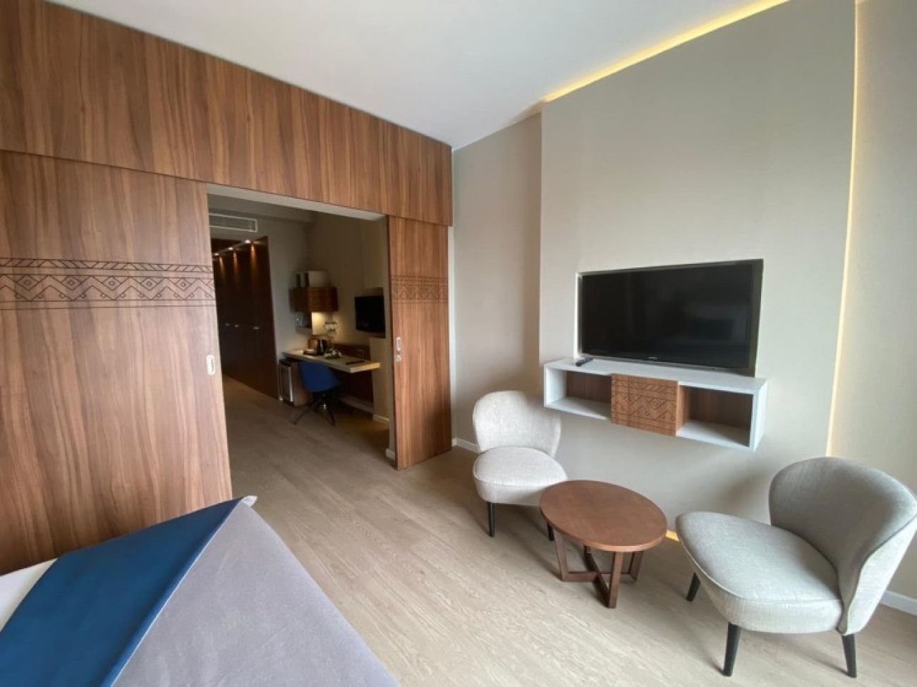 В стаите: Стаи и суитс- предлагат луксозно обзавеждане, между 39 кв.м. и 60кв.м площ, с висока гама материали в баните и Hendiya продукти , балкон или тераса, с хол и/ или трапезария, сателитна телевизия, 24 часа рум сървиз и минибар, халат и чехли.