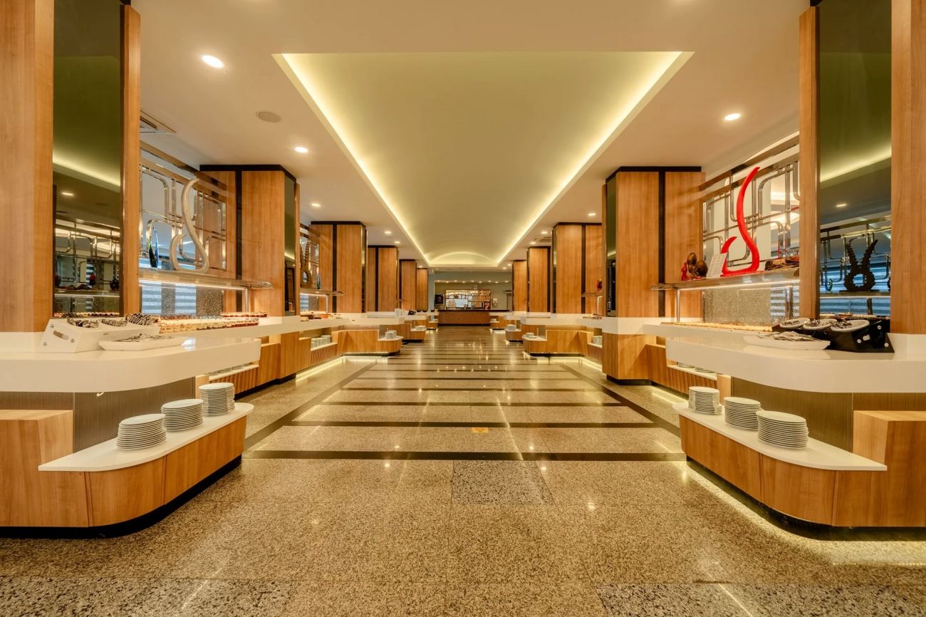 Основен ресторант, а-ла-карт ресторан (платен с предварителна резервация, съгласно концепцията на хотела) 4 бара, дискотека, 2 открити басейна, един от които с водна пързалка и 1 закрит басейн, магазини, СПА център, конферентни зали, паркинг.