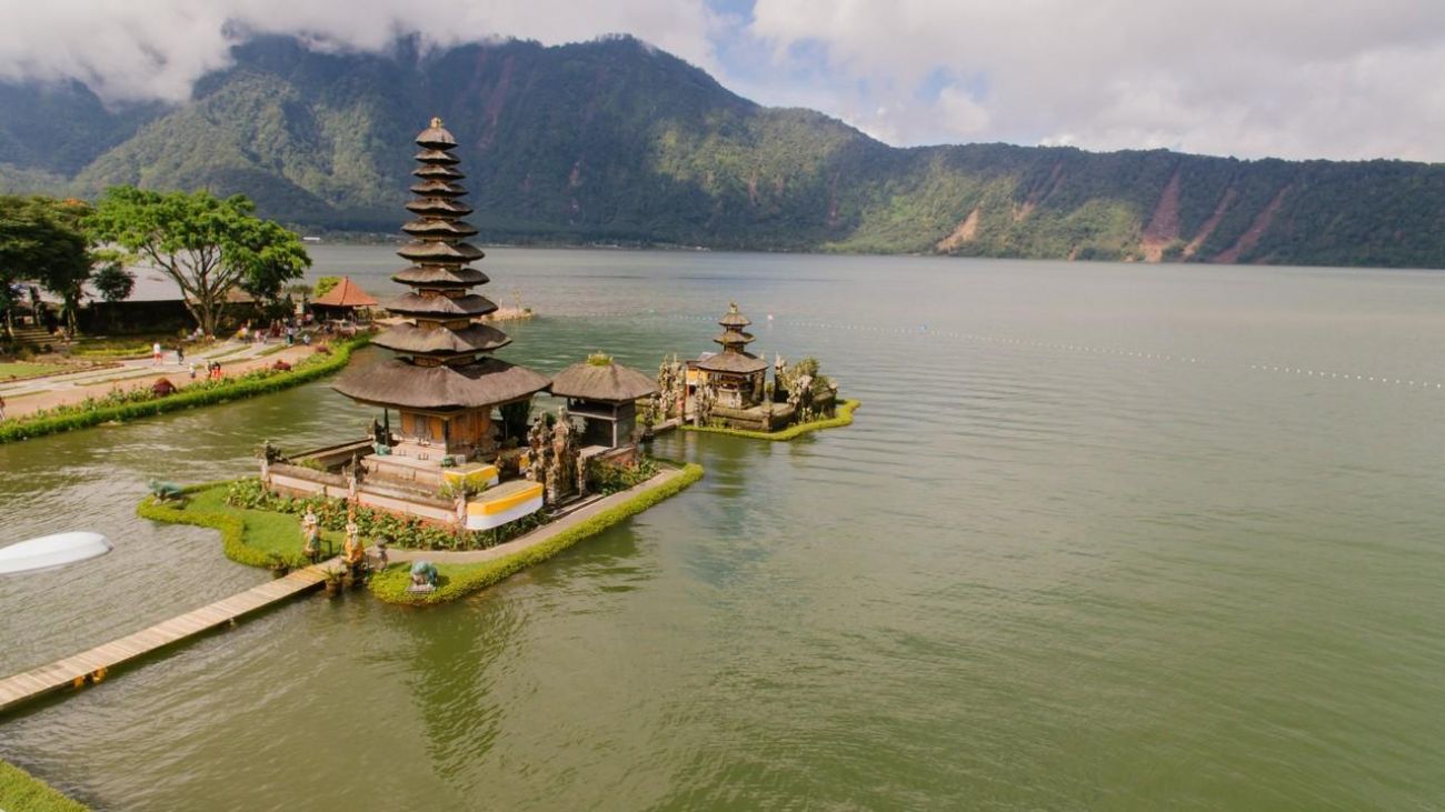 Храм Улун Дану, разположен край живописното езеро Бeратан-второто по големина в Бали.Храмът е построен през 1663 г. и е посветен на богинята на реките и езерата Деви Дану.