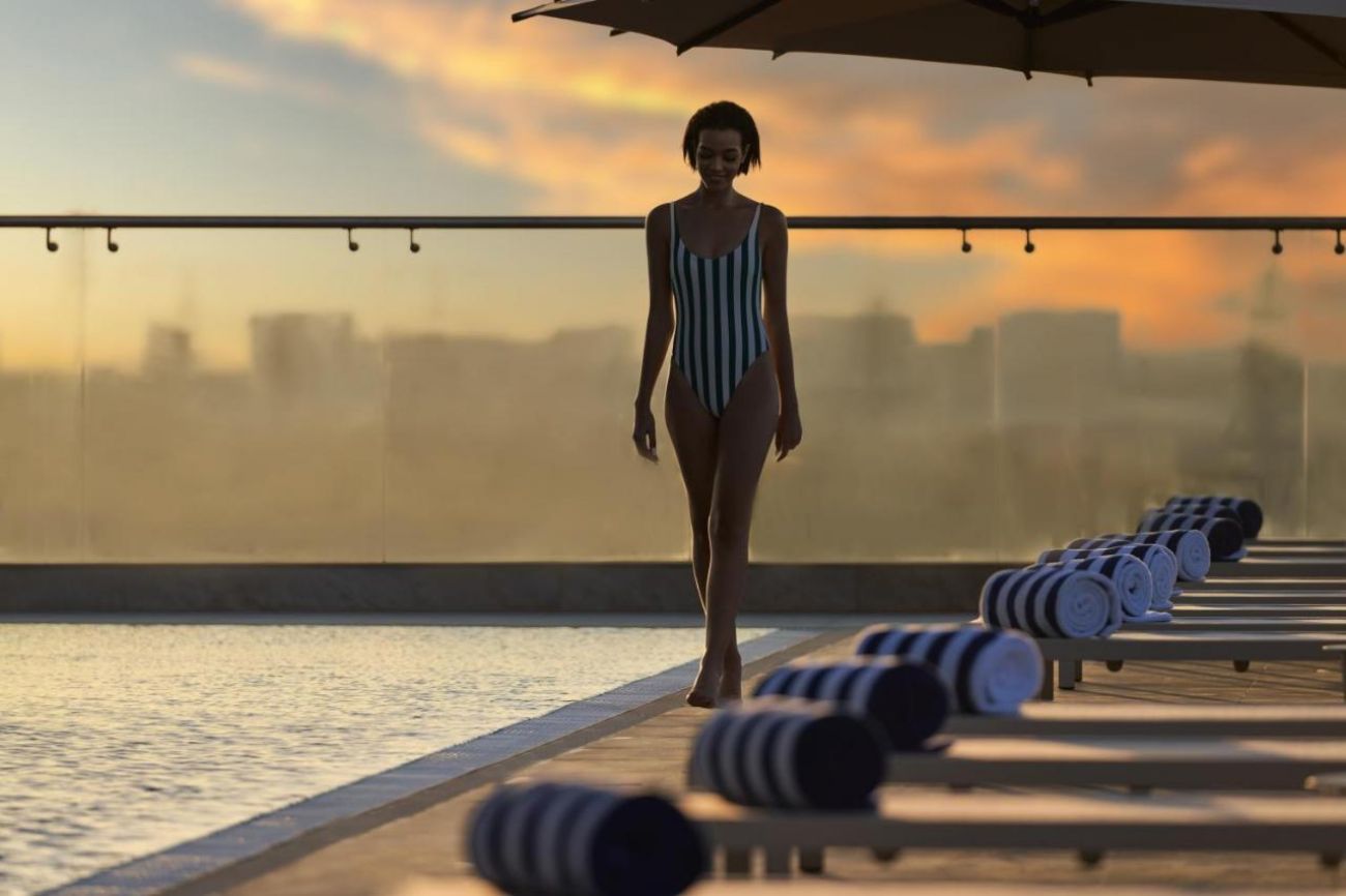 Гостите на хотела имат безпалтен достъп до плаж Th8 Palm и ползват специални цени за храна и напитки в Beach Club Th8 Palm. Плажът се намира на 25 минути от хотела. Чадъри, шезлонги на плажа срещу доплащане от 50 AED на ден през делнични дни и 70 AED на ден през уикендите, а на басейните се предлагат безплатно. Осигурен е безплатен шатъл два пъти дневно - един път до Th8 Palm и един път до JBR.
