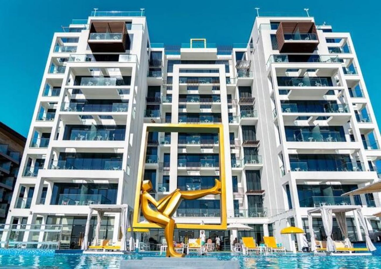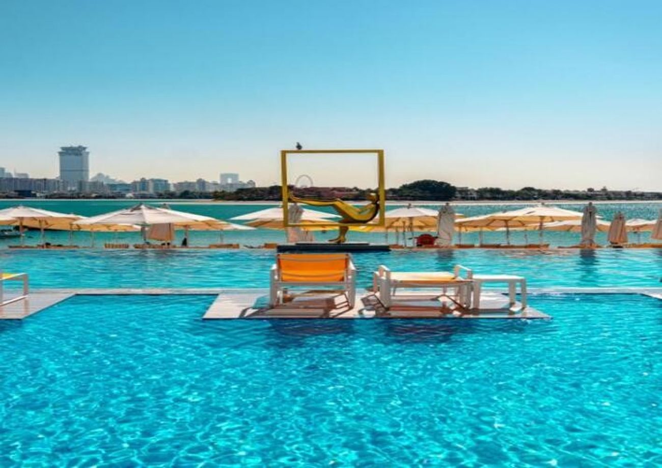Хотел и курорт на брега на морето с изглед към Арабско море, с луксозни стаи и апартаменти, които се отличават със съвременен декор, драматично стенно изкуство, плоски екрани и стъклени балкони с гледка към океана и Палм Джумейра.