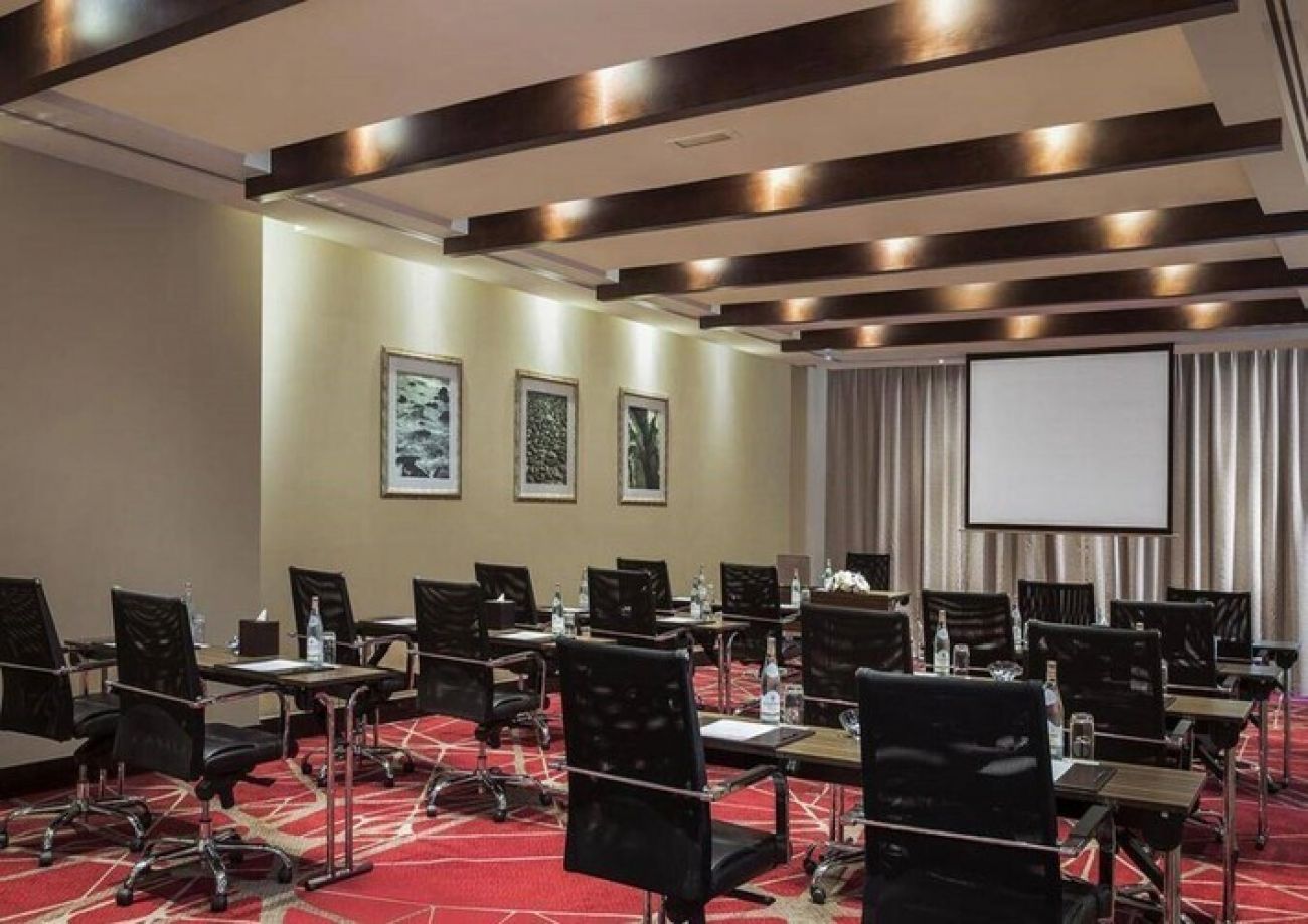 На територията на хотела: Хотелът разполага с три ресторанта, два бара, петнадесет конферентни зали, открит басейн с контролирана температура, конферентна зала за 220 души, четиринадесет заседателни зали, салон за красота, обмяна на валута, пералня, асансьори, пощенски услуги, бизнес център, кафе, безплатен Wi-Fi, паркинг, коли под наем и транспорт до търговски центрове.