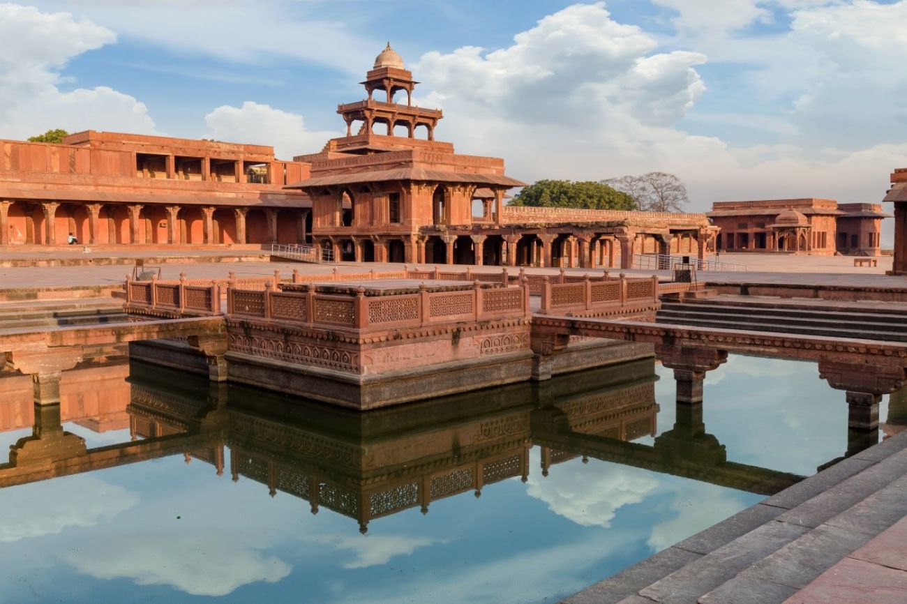 Закуска. Отпътуване за Агра. По пътя посещение на Фатехпур Сикри – столица на империята на великите монголски императори. Градът е построен от император Акбар през 1569 г., но поради недостиг на вода след 15 години е изоставен. Сградите са построени предимно от червен пясъчник и са съчетание на индуистките и ислямските архитектурни традиции. Посещението включва джамията "Джама Масджид", гробницата на Салим Чишти, Панч Махал. Пристигане в Агра следобед. Посещение на крепостта, построена от император Акбар, съчетание на индуистки и ислямски архитектурни елементи. Крепостта е известна с името "Червената крепост" поради цвета на червения пясъчник, който е използван за изграждането й. Вечерта, при залез слънце, посещение на мавзолея „Тадж Махал” – едно от седемте чудеса на света, построено от Шах Джахан (затворен е всеки петък). Този символ на любовта е построен в памет на съпругата му Мумтаз Махал. Нощувка.