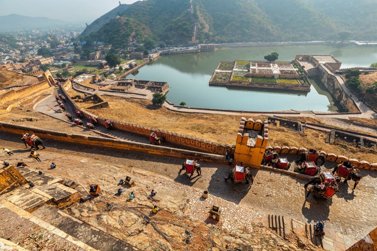 Закуска. Изкачване със слонове до Форт Амбър. Раджа Ман Сингх, командирът на армията на Акбар, изгражда крепостта в края на 16 век. Крепостта, разположена на хълм с изглед към езерото, е превъзходен пример на раджпутската архитектура. Следобед – панорамна обиколка на Джайпур, наричан "розовия град" заради необичайно розовия цвят на камъка, който се използва за строителството на сградите: Градският дворец с изящна колекция от текстил, костюми и оръжия; обсерваторията "Джантар Мантар" и Дворецът на ветровете (Хава Махал). Нощувка.