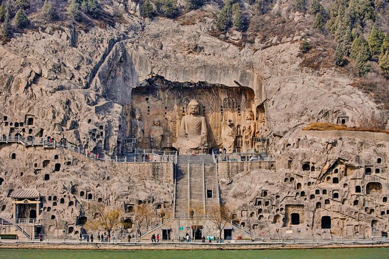 Следва посещение с разглеждане на уникалния будистки манастирски комплекс – пещерите Лонгмън (ЮНЕСКО) известни още като вратата на дракона. 1400-те пещери се намират на 12 км. южно от съвременен Лоян и съхраняват 100 хиляди будистки статуи, с размери от 25 мм. до 17 м. височина и около 2500 стели и надписи, поради което носят още името "Гората на Древните Колони".