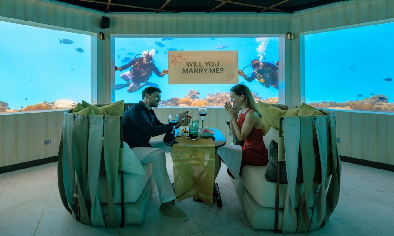 обяд или вечеря в M6m (подводен ресторант, само с резервация; деца под 15 години могат да посещават ресторанта само в понеделник и четвъртък като част от „Обяд със семейството“; достъпен за гости, останали повече от нощувки; посещението е възможно веднъж на всеки 7 дни)