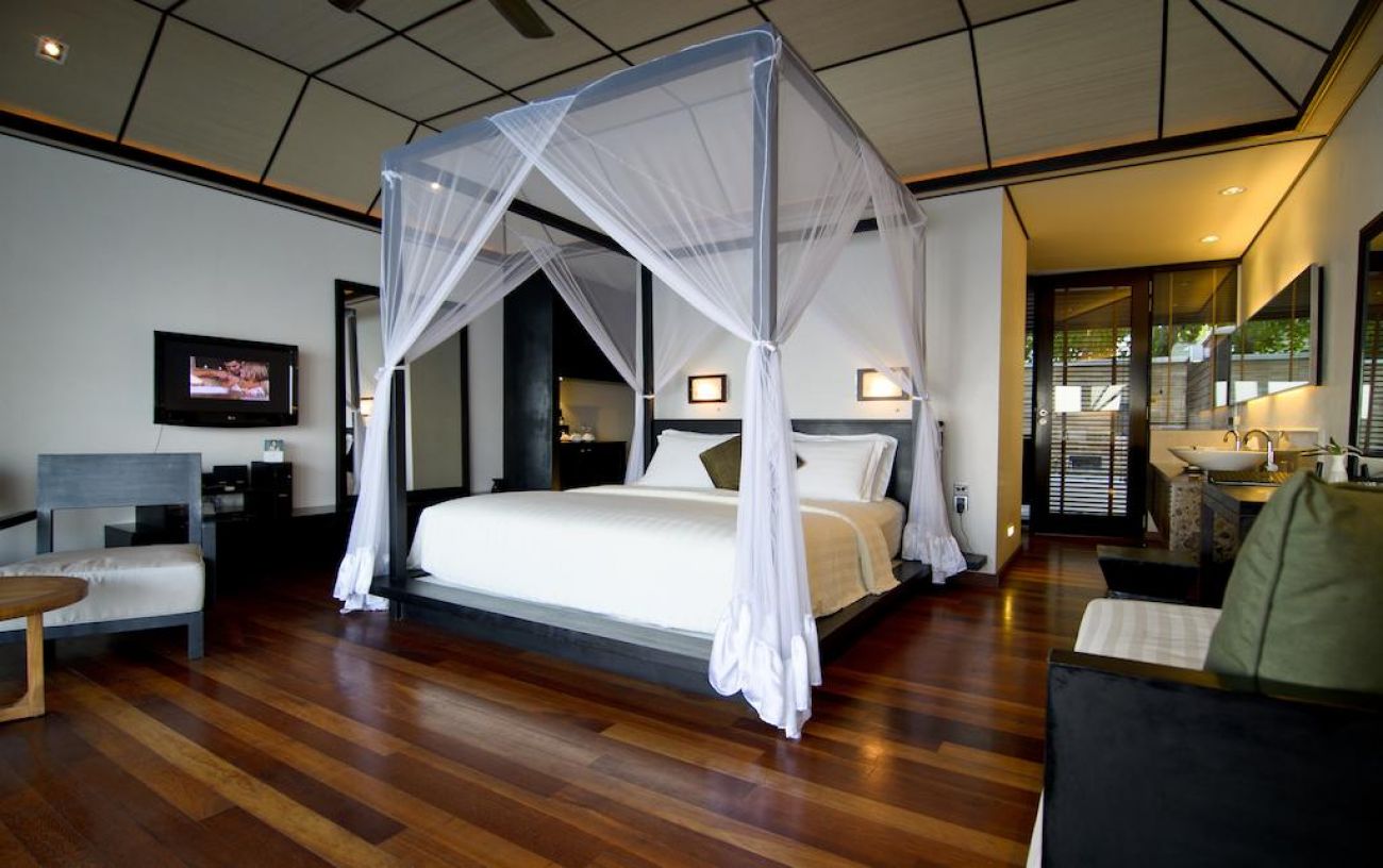 Всички климатизирани вили и суити са със самостоятелна веранда или тераса. Включват плоскоекранен телевизор със сателитни канали и система за домашно кино. Осигурени са също кафемашина Nespresso, удобства за приготвяне на чай/кафе, сейф и минибар. В самостоятелните бани има хидромасажна вана, душ, комплект за дентална хигиена и чехли. Стаите предлагат китайски кабелни канали и китайски вестници.