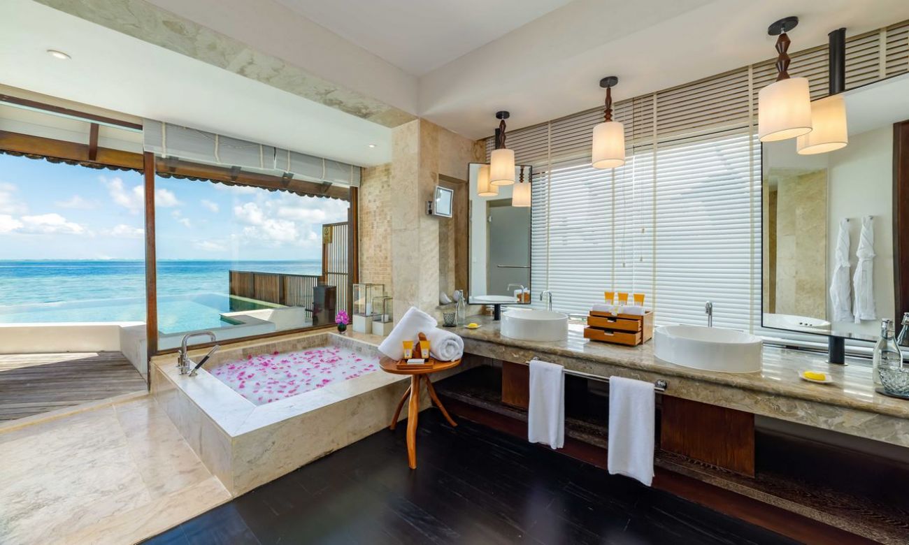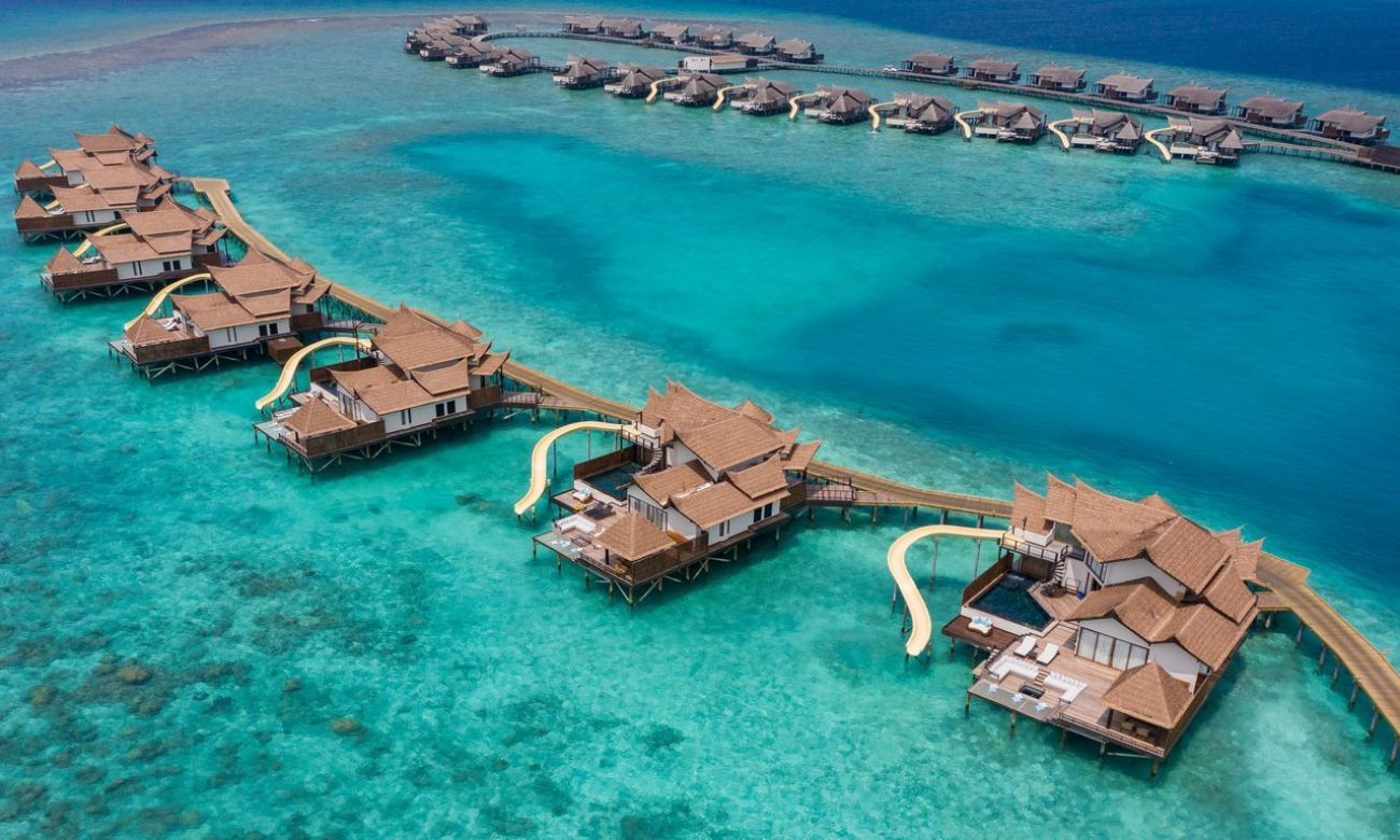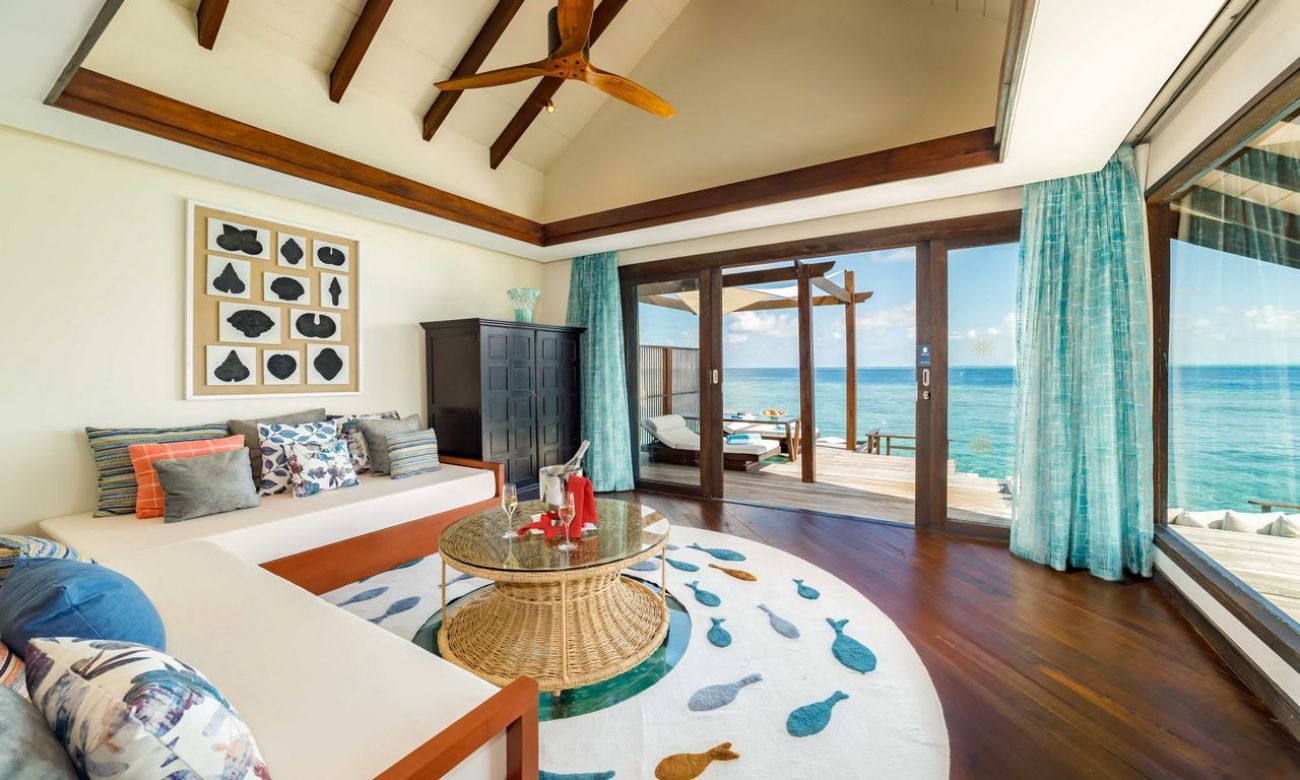- OCEAN POOL SUITE WITH SLIDE: Стая: крайбрежна вила, 280 м², спалня, баня, мокър басейн, водна пързалка.