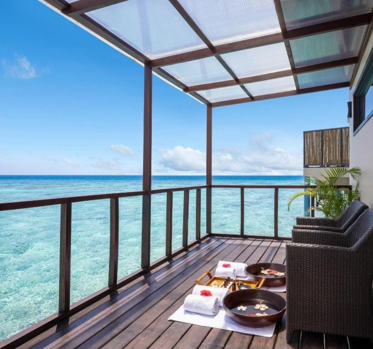 Елегантен луксозен курорт за романтично бягство. Тук ще намерите уникални стаи в японски минималистичен стил, автентичен японски ресторант и чаени церемонии. Всички стаи са водни вили.