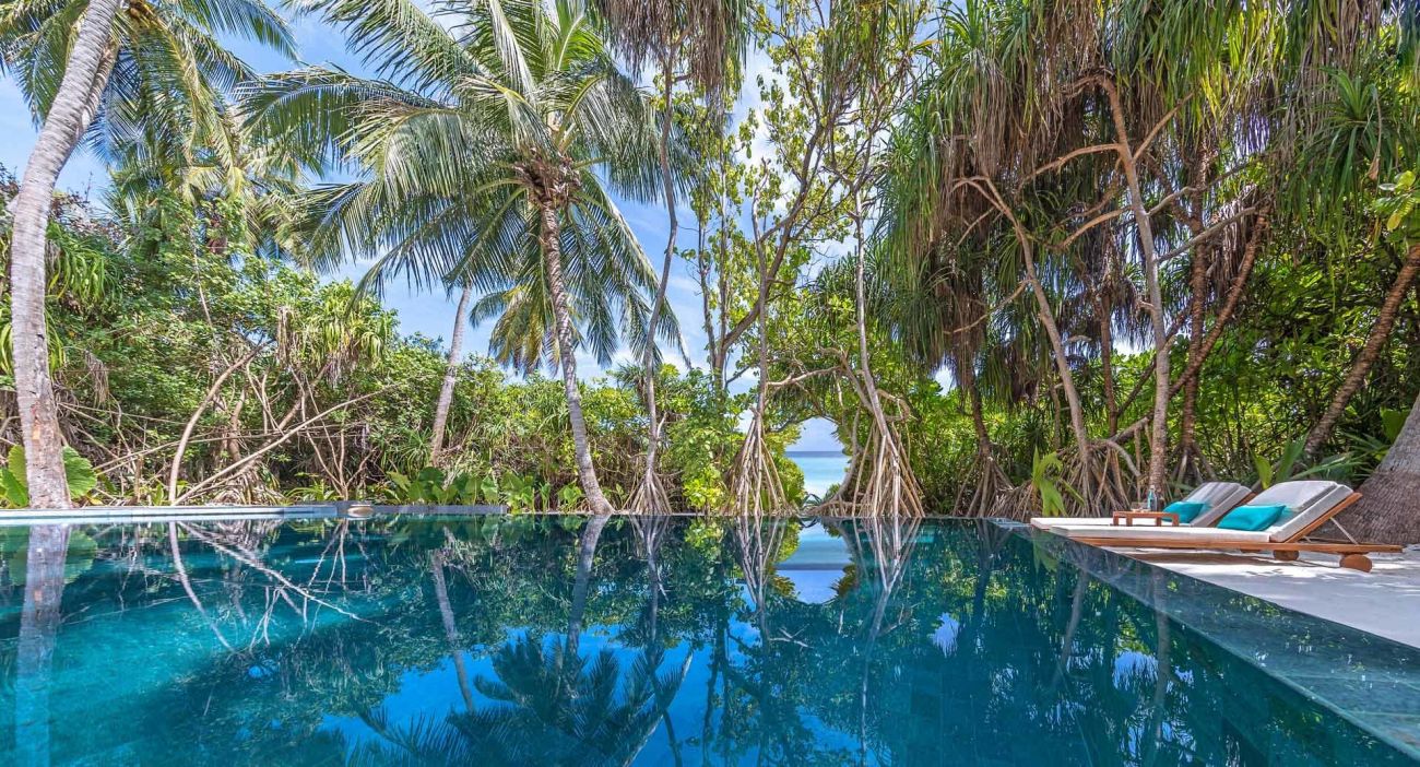 - 1 Four Bedroom Beach Pool Residence (~2994 кв.м) е крайбрежна вила с два басейна. Състои се от просторна дневна с трапезария, три спални с двойно легло king size, спални с отделни легла, съблекални във всяка спалня, 4 бани с отворен план. На терасата: два басейна, шезлонги, люлки, кътове за хранене и достъп до плажа. Максималното настаняване е 12 възрастни и 4 деца или 8 възрастни и 8 деца.
