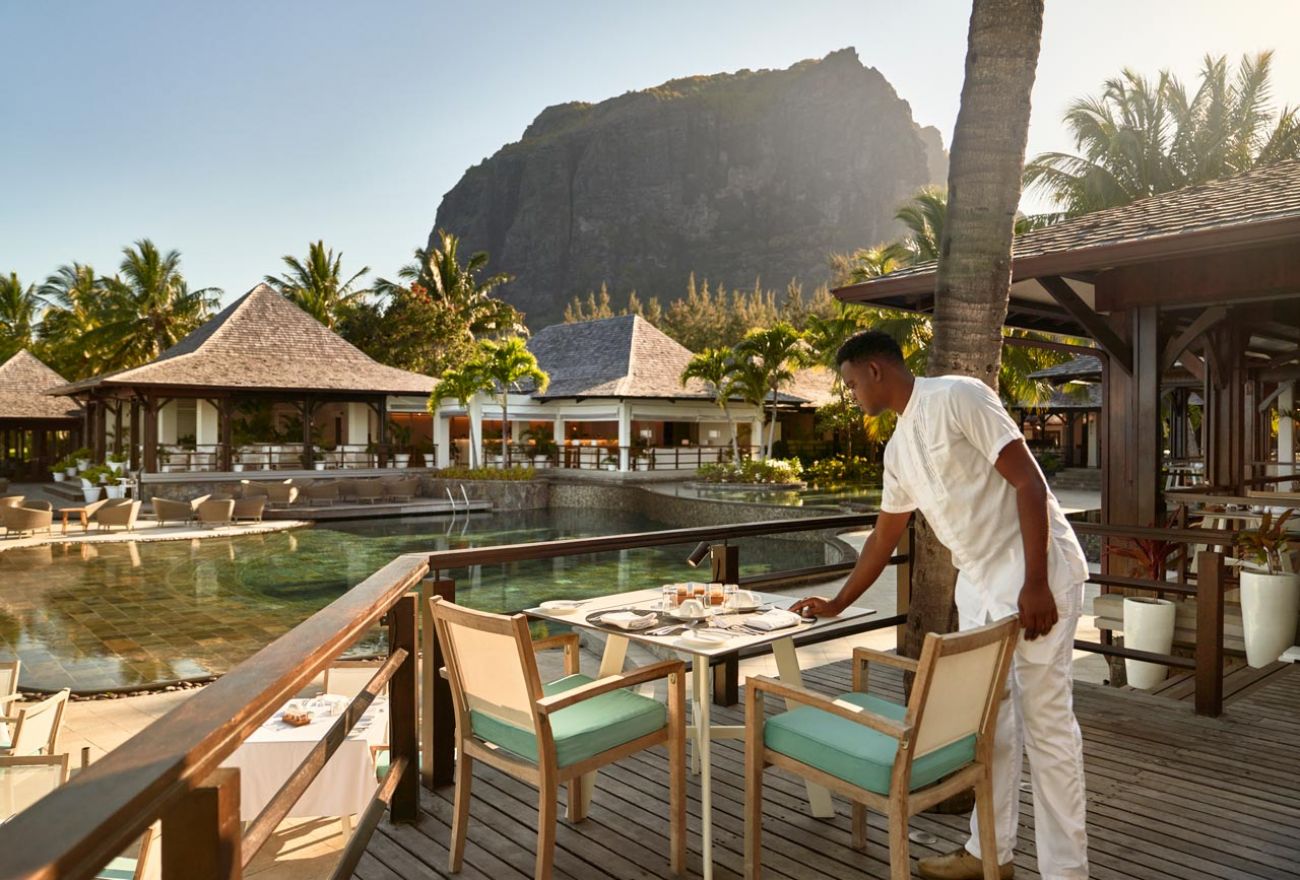 Разположен на белия пясъчен плаж на остров Мавриций, хотелски комплекс LUX* Le Morne предлага възможност за хранене на открито с изглед към полуостров Морн Брабант.