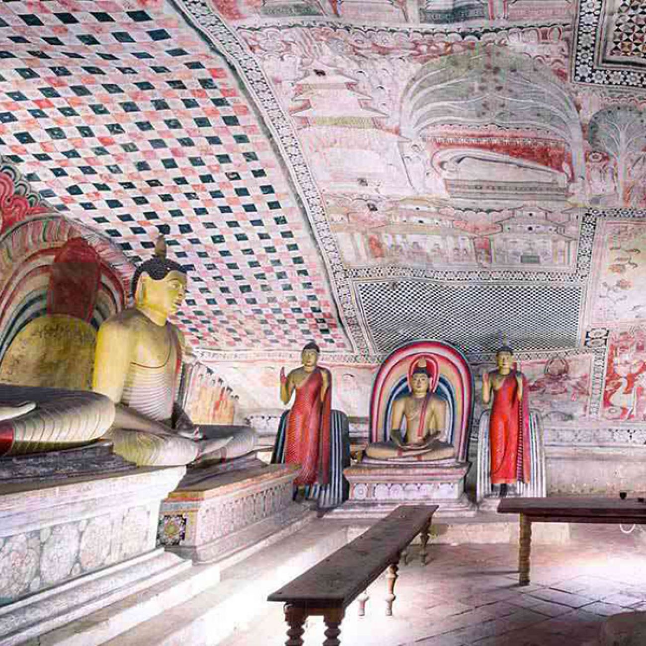 Храмът Dambulla е предоставен на будистките свещеници през 1-ви век преди Христа от крал Walagambahu. Dambulla е защитен обект на ЮНЕСКО и е най-хубавия пещерен храм, най-големият и най-добре запазен храмов комплекс в Шри Ланка. Комлексът от 5 пещери с площ над 2000 кв.метра е построен върху скала на височина 150 м и има за изкачване над 350 стръмни стъпала. Известен е с множеството си картини - в пещерите има над 150 изображения на Буда като най-голямото е каменна скулптура с размер около 14 метра. Тук се намира най-богатата колекция от статуи на Буда, повечето от които на възраст над 2000 г. Изкачване по 800+ стъпала. Не е подходящо за трудно подвижни клиенти.