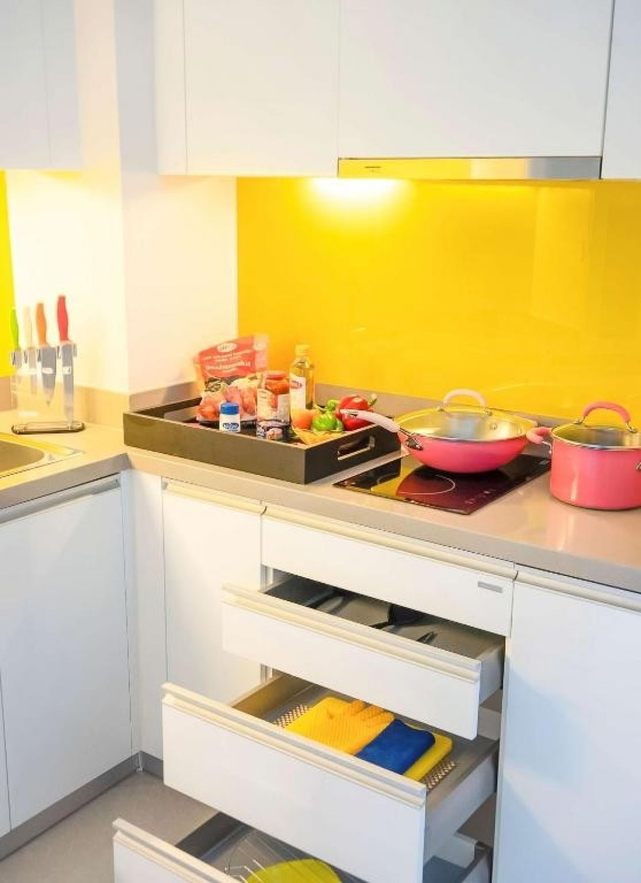 В стаите: Всички апартаменти разполагат с отделна спалня, всекидневна зона и самостоятелен балкон. Кухнята е напълно оборудвана с всички прибори, удобни за готвене на закрито. Почистването се извършва веднъж на два дни.