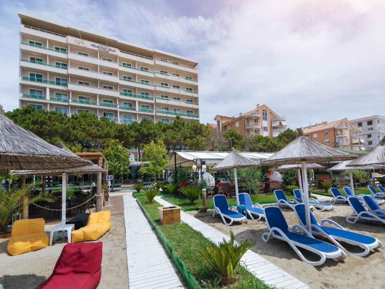 Намира се на 37 км от летище Тирана - в района на Голем, на 13 км от центъра на Дуръс. Разположен е на брега на морето и е истински рай на спокойствието. Построен е през 2011 г. и е последно реновиран 2015 г. На 200 м от хотела има автобусна спирка.