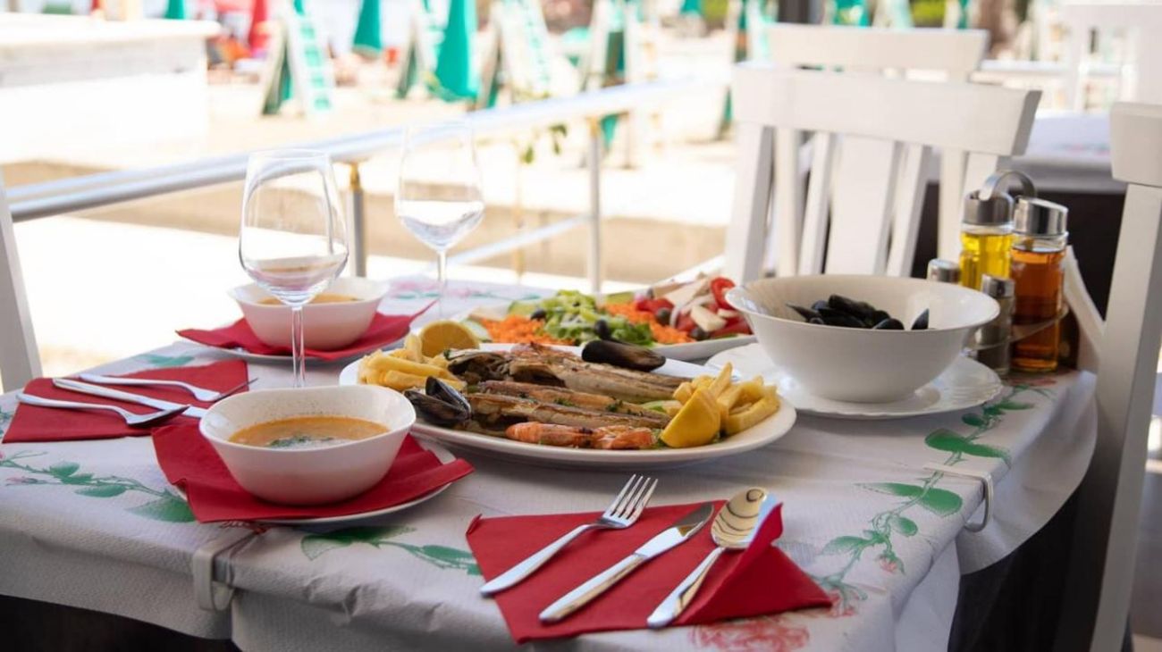 Разполага с един основен ресторант, ресторант на плажа, пицария, магазин, обменно бюро, паркинг, рент-а-кар, Wi-Fi - на цялата територия на хотелът.