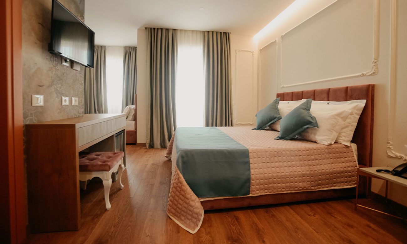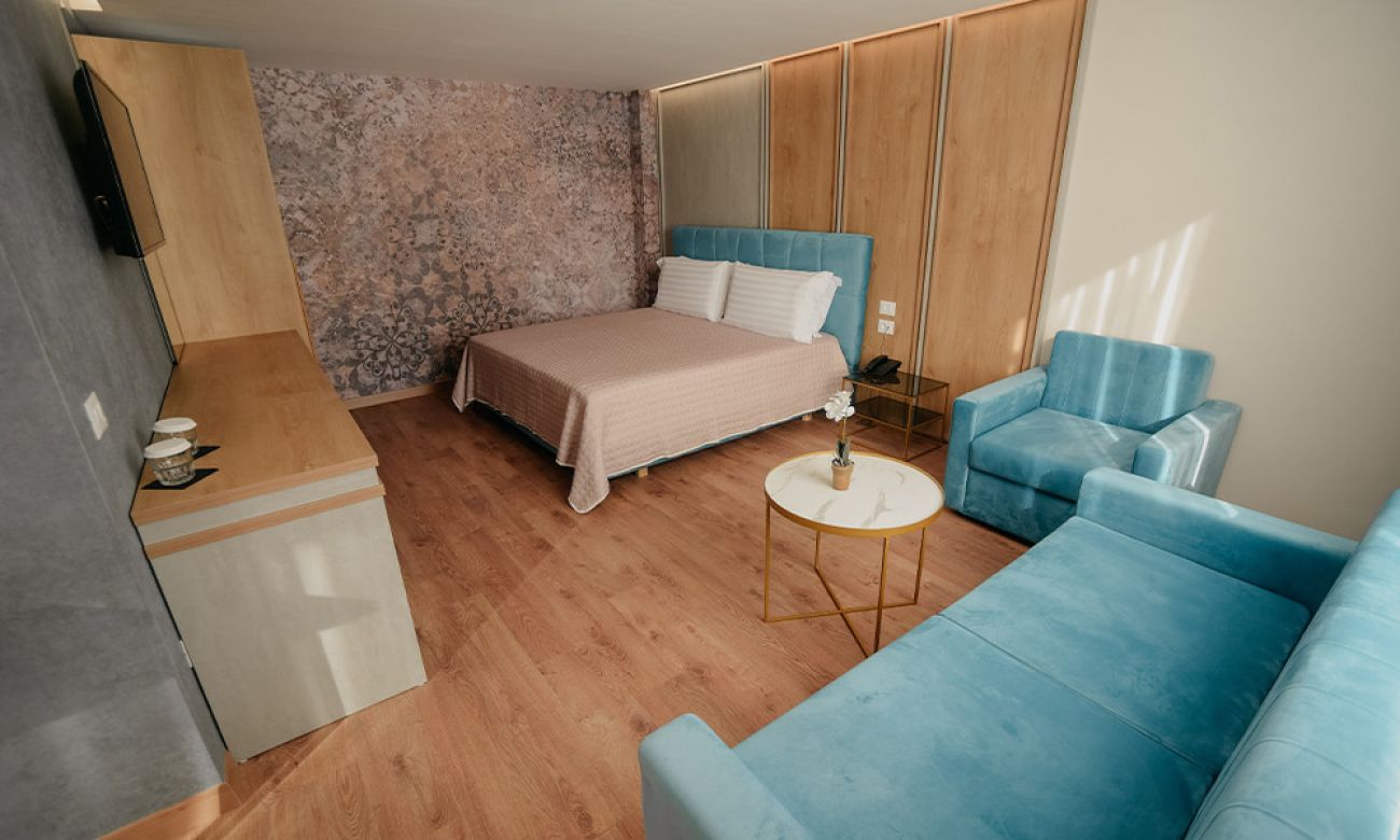 Junior Suite (56 кв. м) – Стаята, перфектна за двойки, разполага с двойно легло.