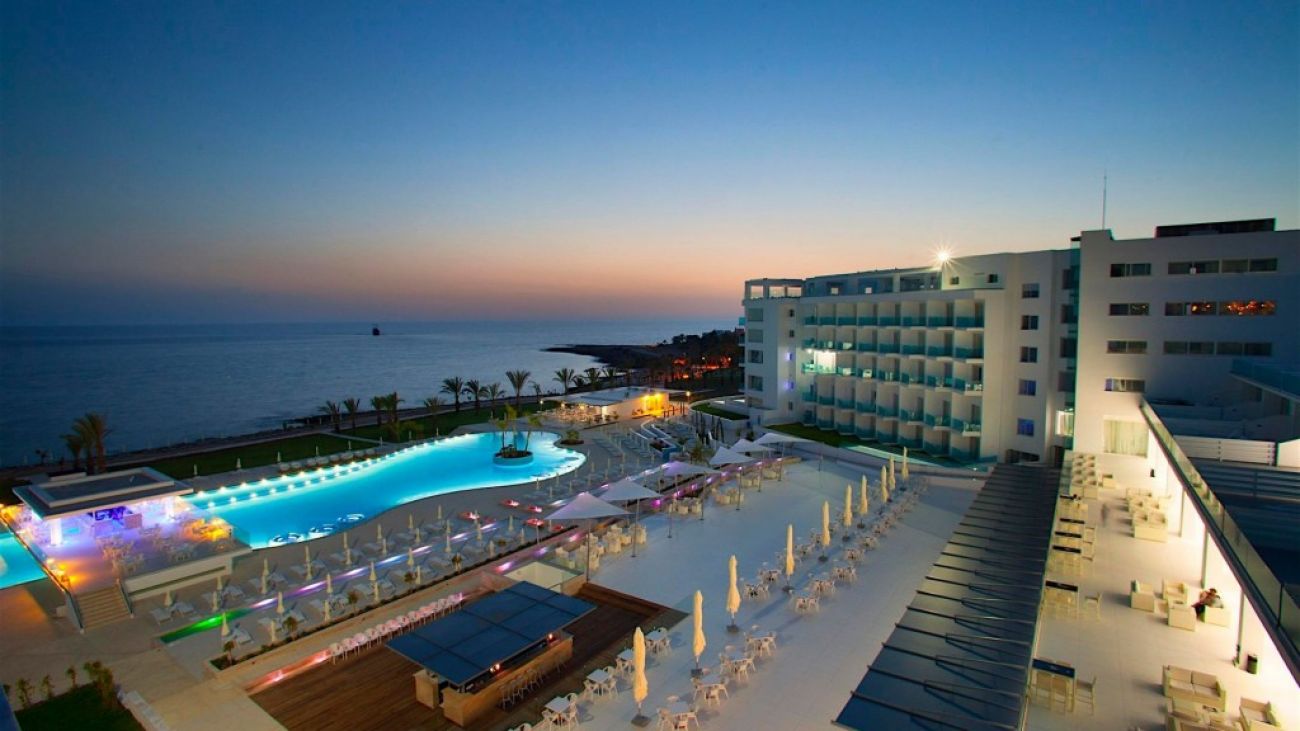 King Evelthon Beach Resort се намира до плажа в град Пафос. Той предлага стилно обзаведени стаи с климатик, СПА център, воден парк, открит и вътрешен басейн, както и разнообразие от ресторанти и барове. Барът на хотела сервира коктейли и освежаващи напитки. Гостите могат да посетят спа и уелнес центъра с разнообразни процедури. Можете да поддържате форма във фитнес центъра. На място има също тенис кортове и игрище за минифутбол.