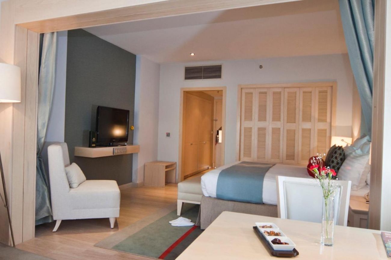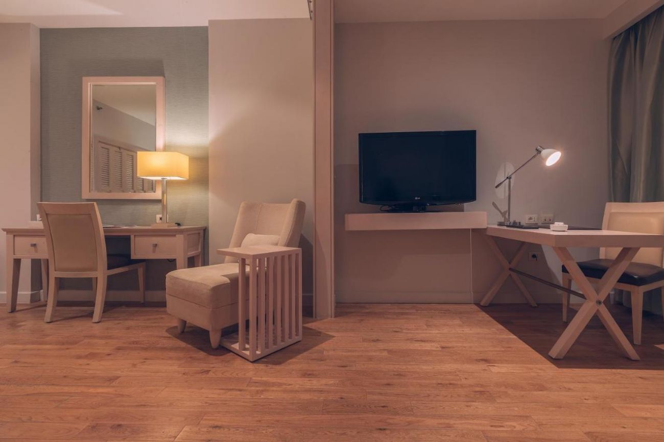 Хотелът разполага с общо 292 стаи, разположени в основна сграда и анекс сграда. 83 Standard Rooms (37 м2), 94 Superior Sea View Rooms (37 м2 ), 32 Deluxe Rooms (47 м2), 12 Junior Suite (47 м2). Всички стаи са оборудвани с климатик, телевизор, телефон, баня с душ, сешоар, минибар (зарежда се всеки ден с минерална вода - безплатно), сет за чай/кафе, сейф (безплатен), балкон. Почистване на стаите и смяна на кърпите - всеки ден, смяна на спално бельо – 3 пъти в седмицата.
