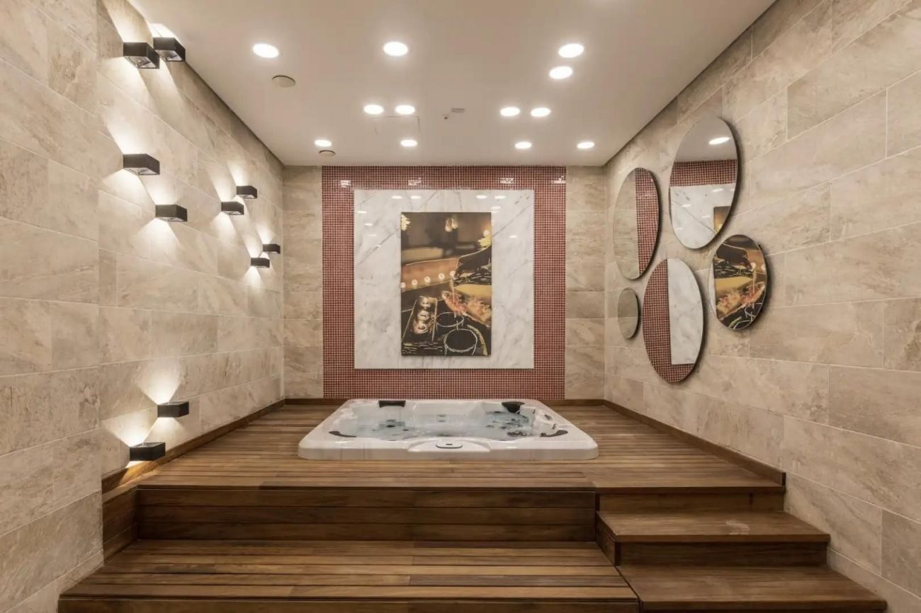 Уелнес център, осветен тенис корт, водни спортове на плажа.
