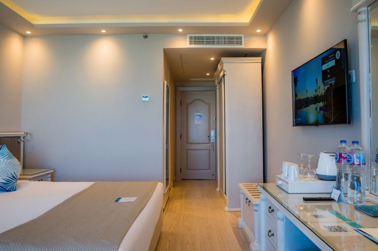 - Делукс стая с морски изглед: приблизително 28 м2, морски изглед, стая с двойно легло king-size или две единични легла, баня с вана, прозорец/тераса/балкон, сателитна телевизия, телефон, сейф (размер за лаптоп), климатик, минибар, удобства за приготвяне на кафе и чай, сешоар, кантар (при поискване), ютия и дъска за гладене (при поискване), адаптери, щепсели и USB портове