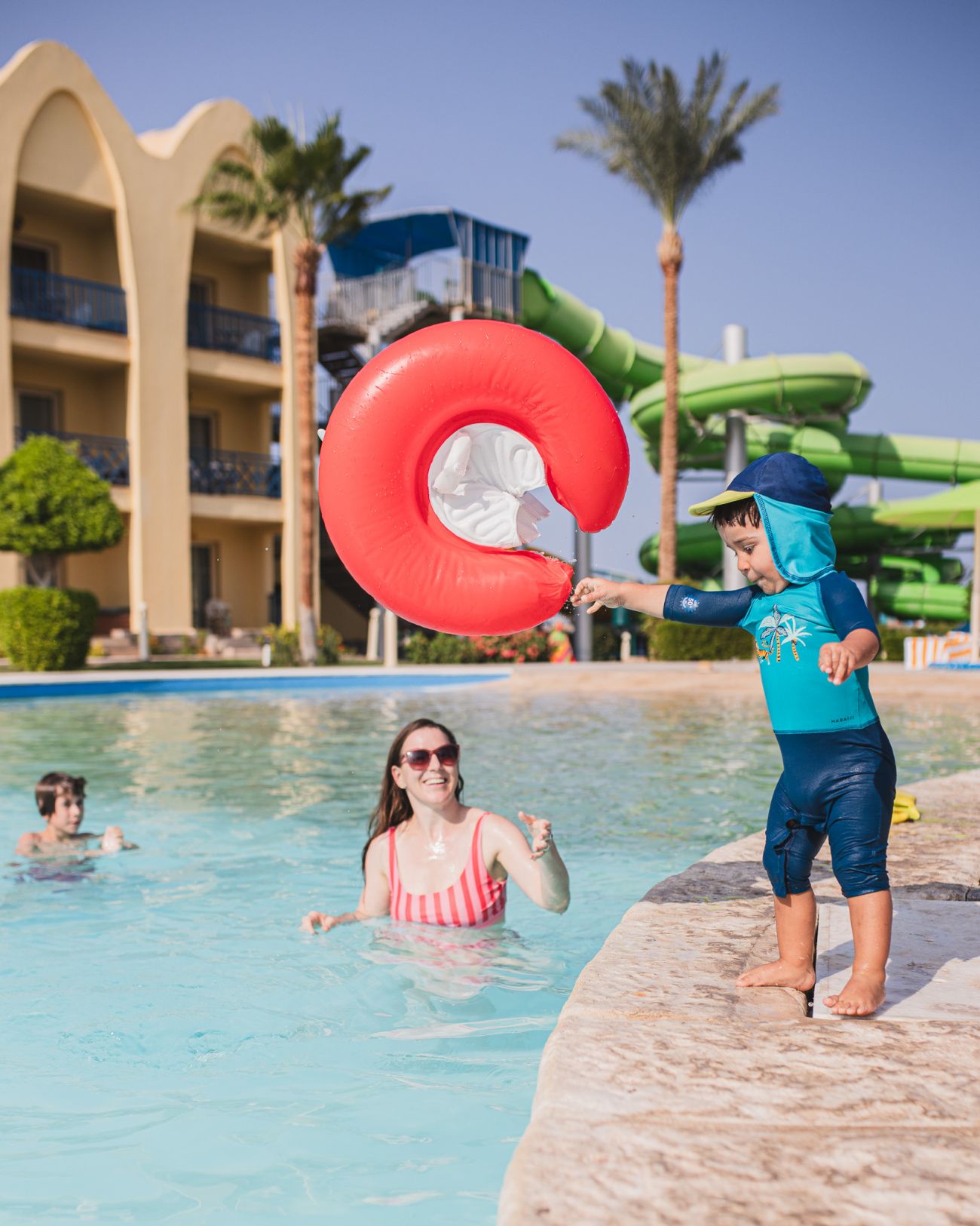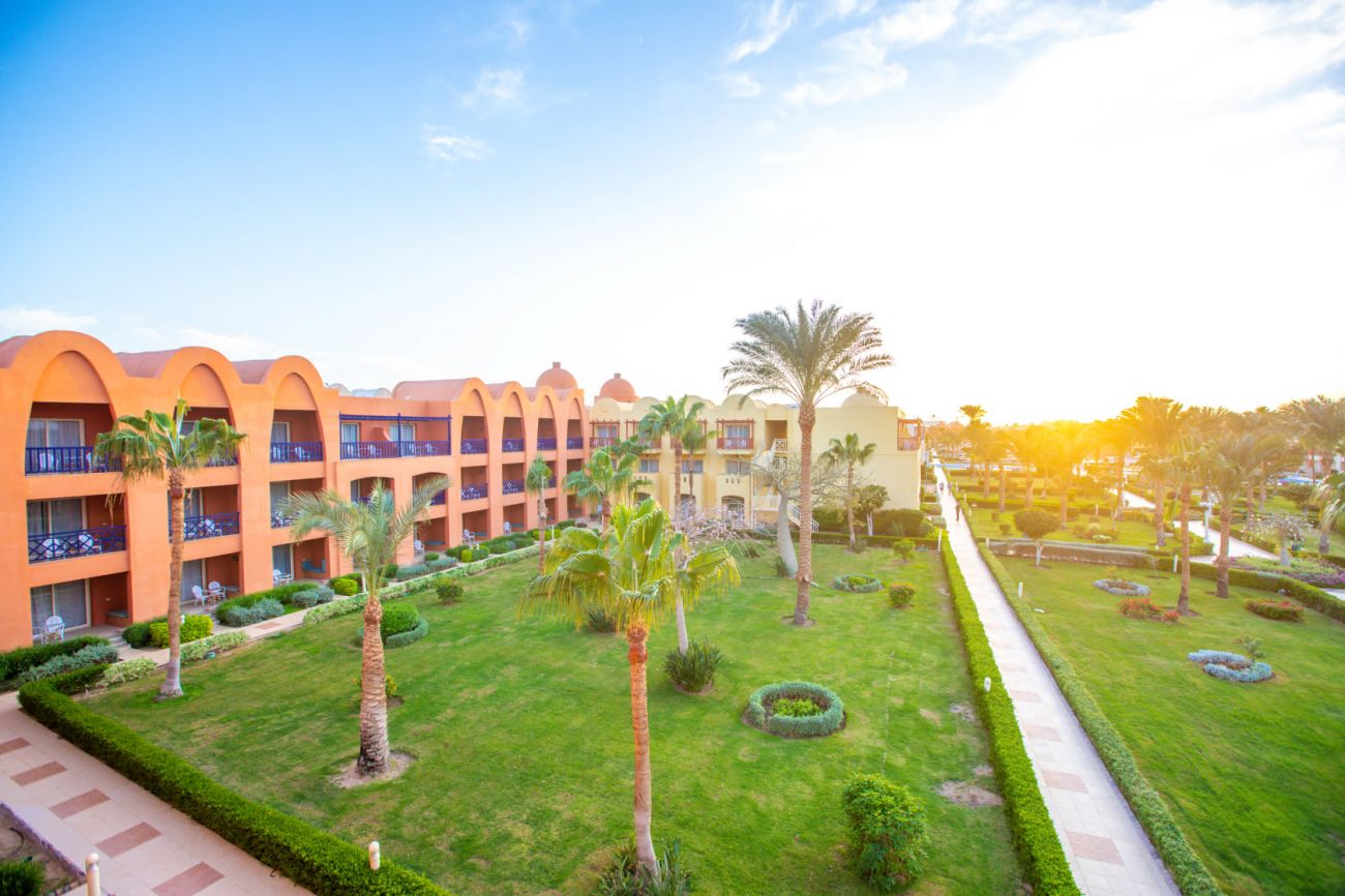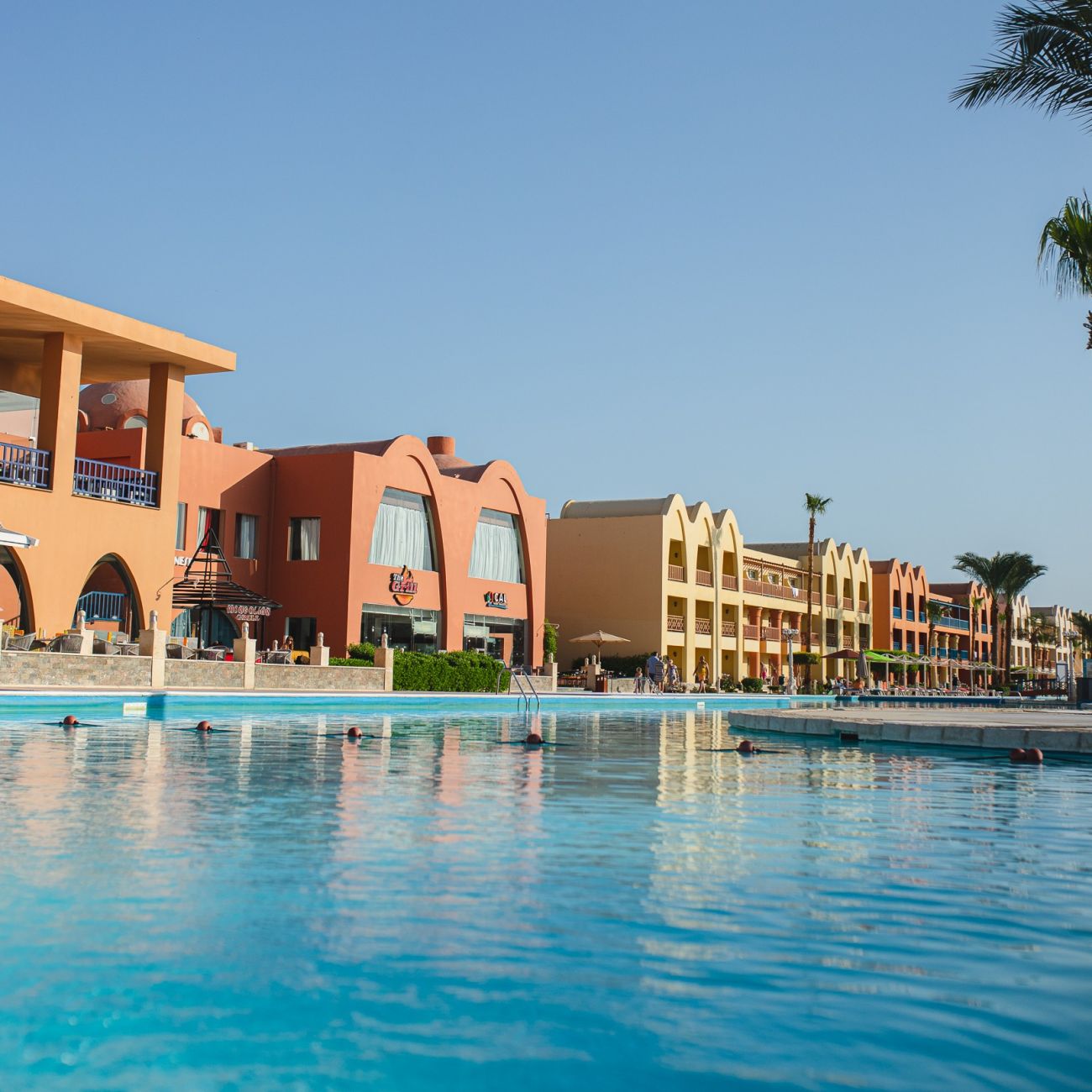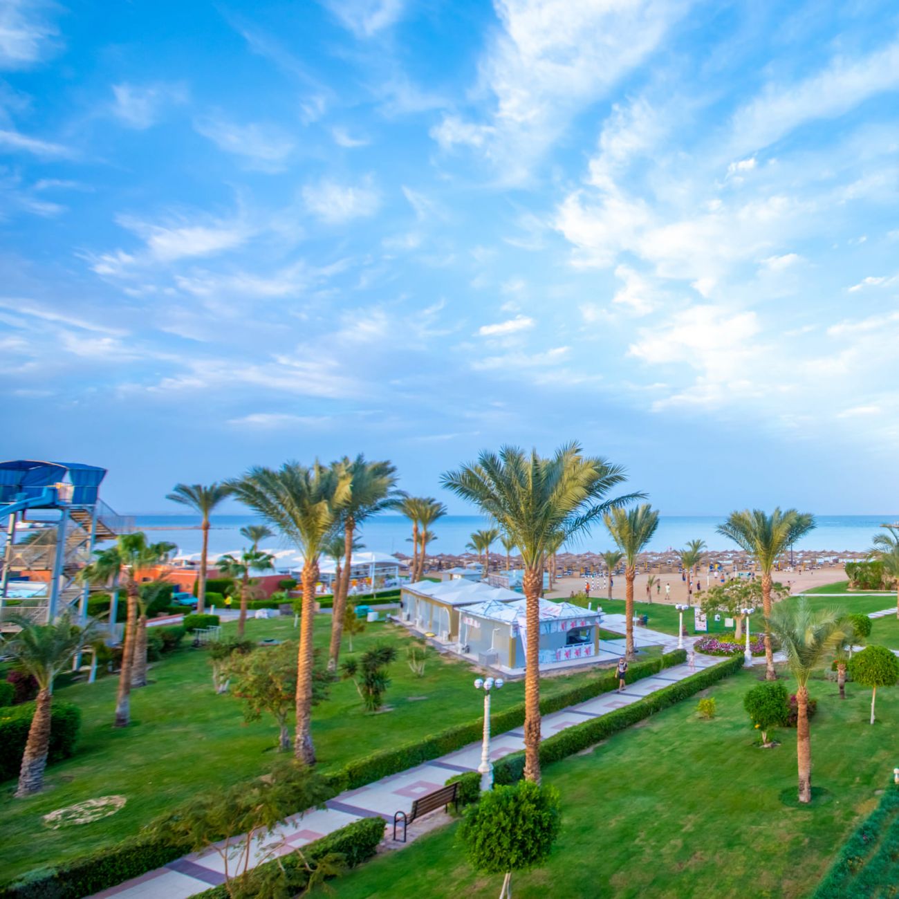 Намира се на 12 км. от летище Хургада, на 17 км. от центъра на Хургада, на брега на морето.