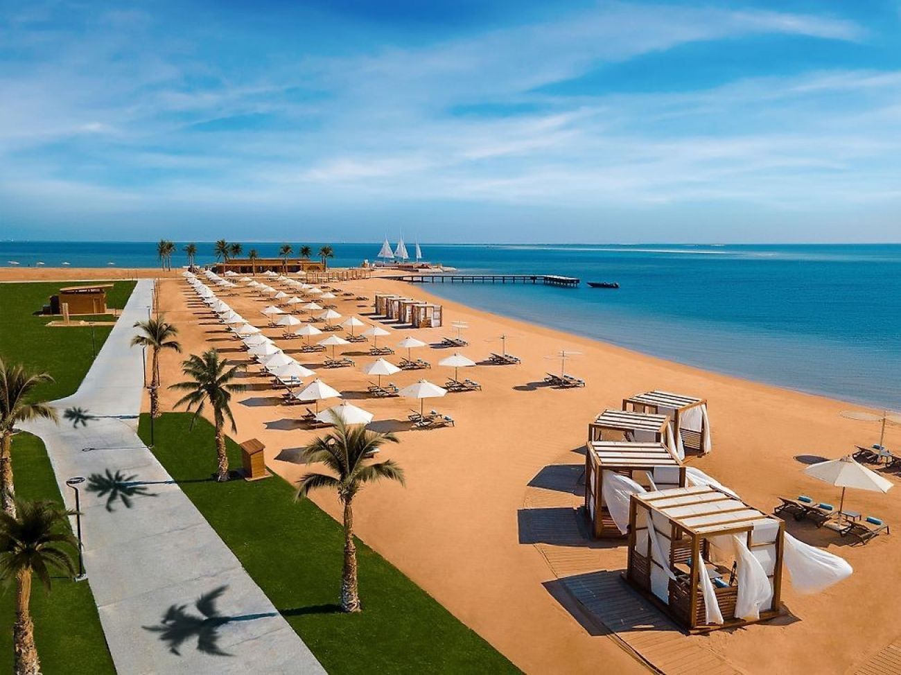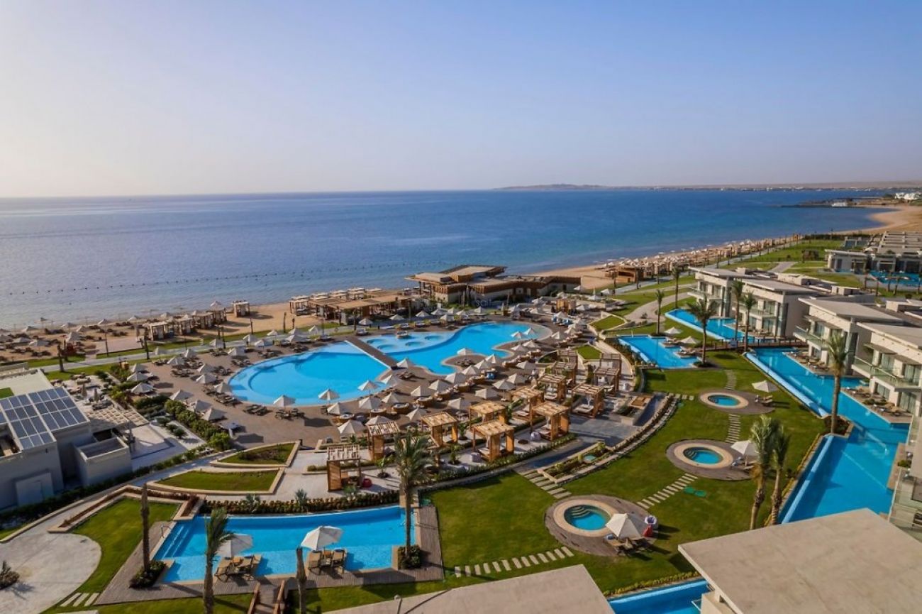 Разположение: Хотелът се намира на 7 км от международното летище в Хургада, на 12 км от центъра на Хургада, на 10 км от Senzo Mall, позициониран на брега на морето. Открит е през 2021 г. въврху територия с обща площ от 255 000 m2.