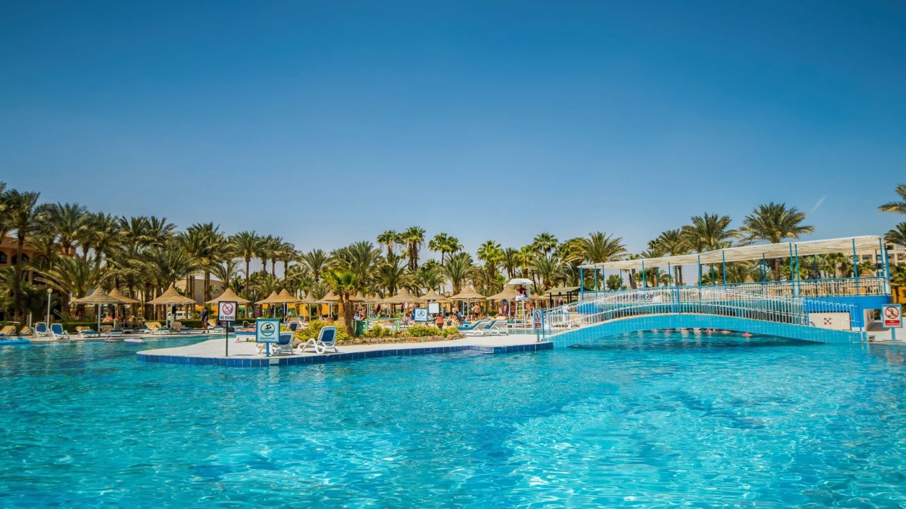 Намира се на 3 км. от летище Хургада, на 7 км от центъра на Хургада, на брега на морето.