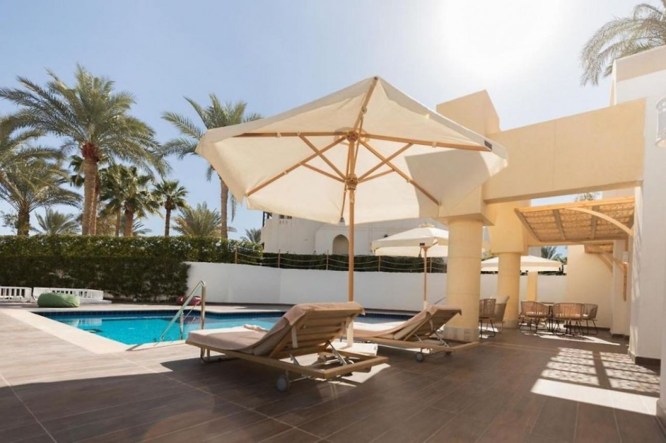 Местоположение: Хотелът се намира на 20 км от летището, на 7 км от залива Наама и на 3 км от Стария град в района Хадаба, точно на брега на морето.