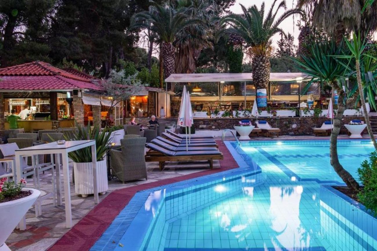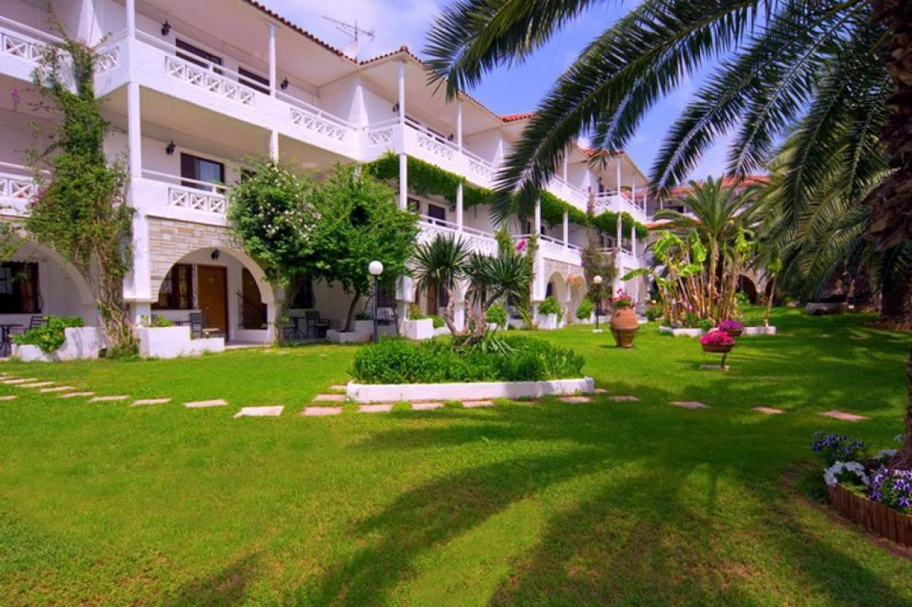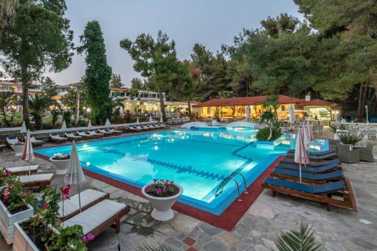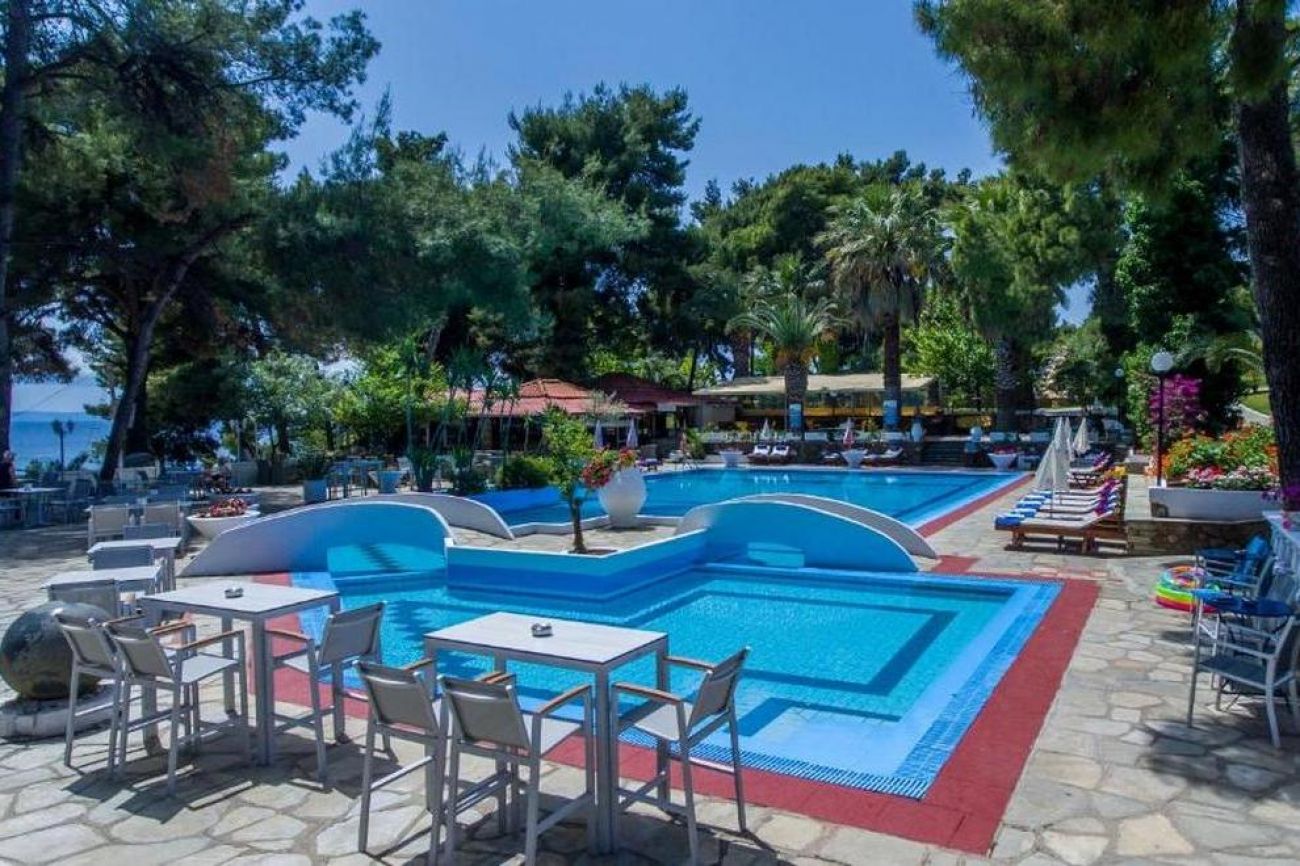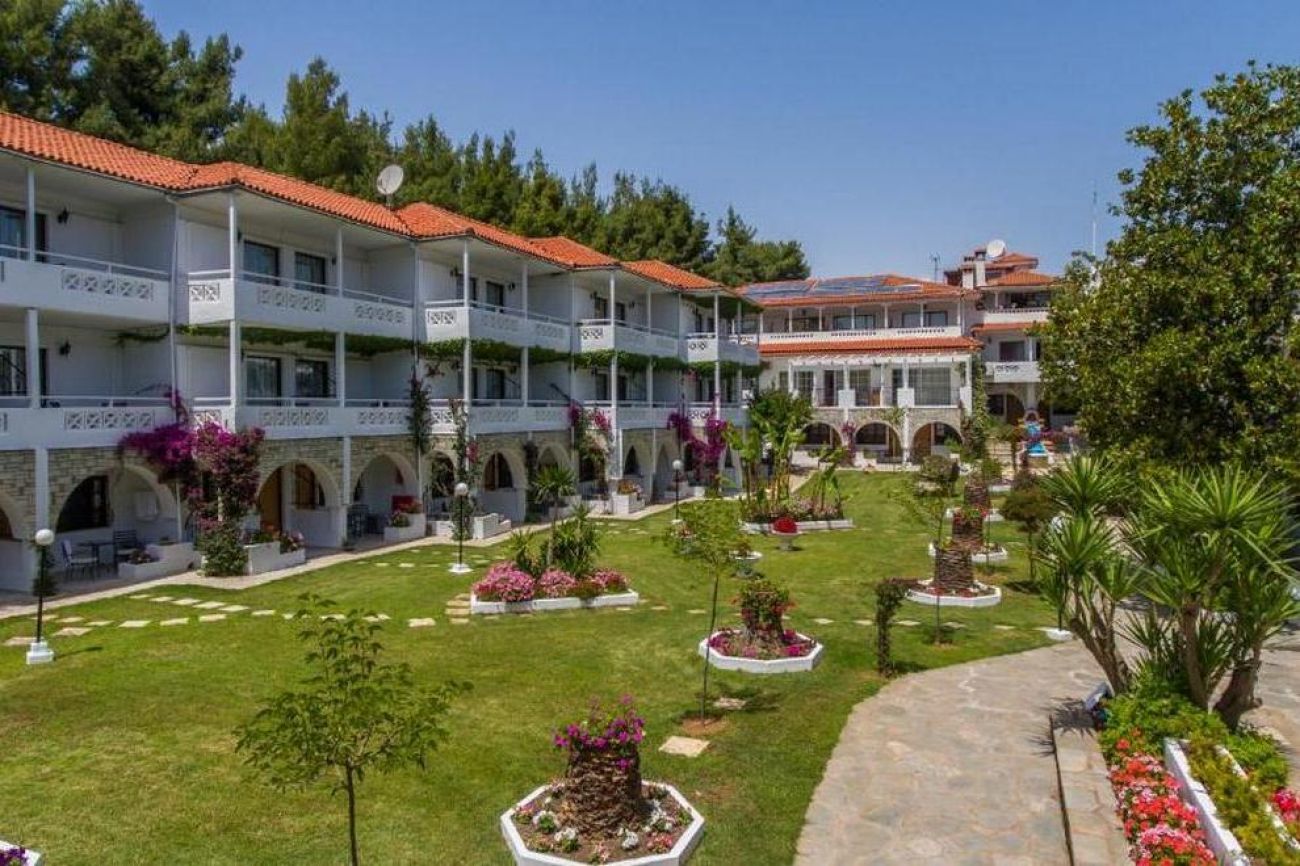 Хотелът се намира на брега на морето, сред добре поддържана зелена територия, където можете да се отпуснете с чаша леденостудена мента със спрайт. Центърът на селцето Никити е на 3 км, Метаморфоси е на 2,5 км.