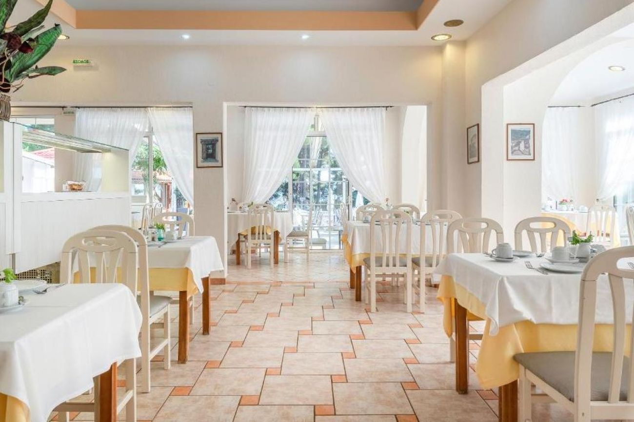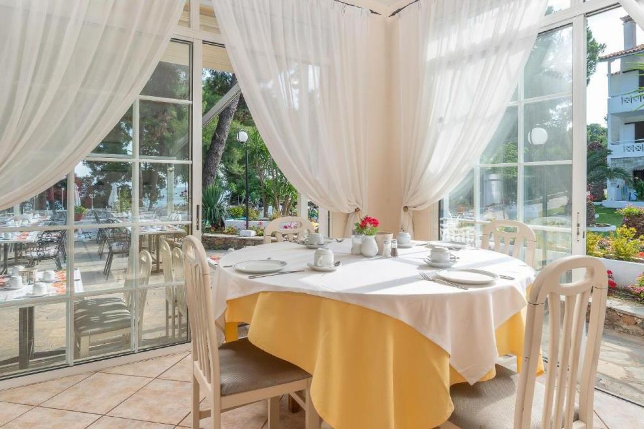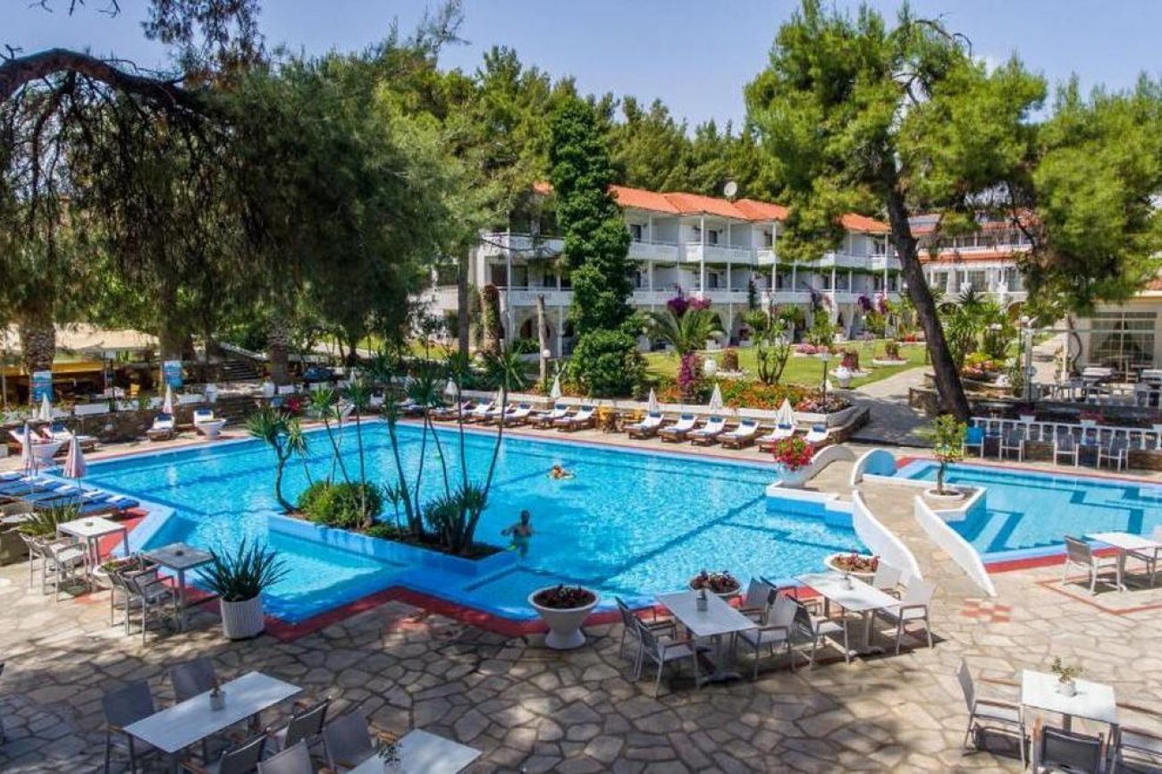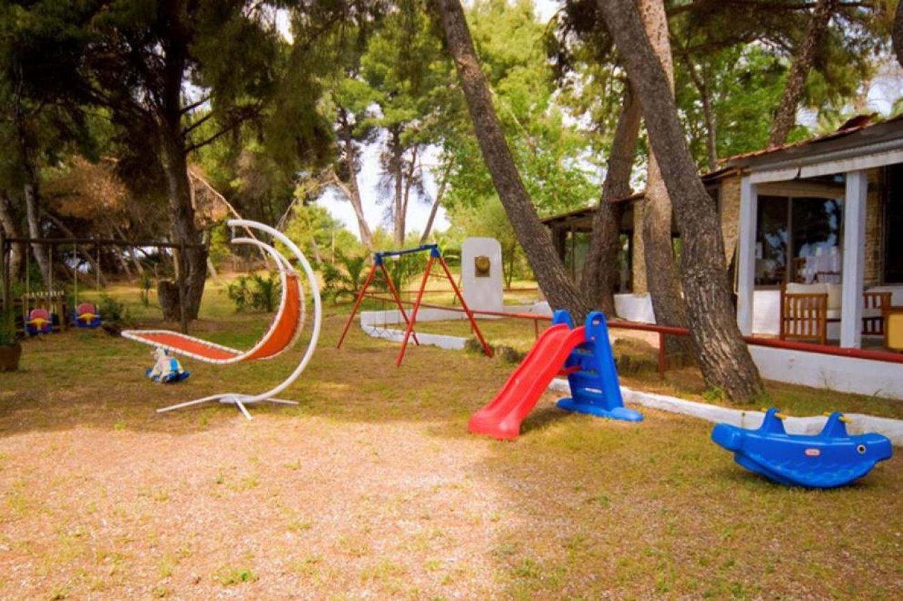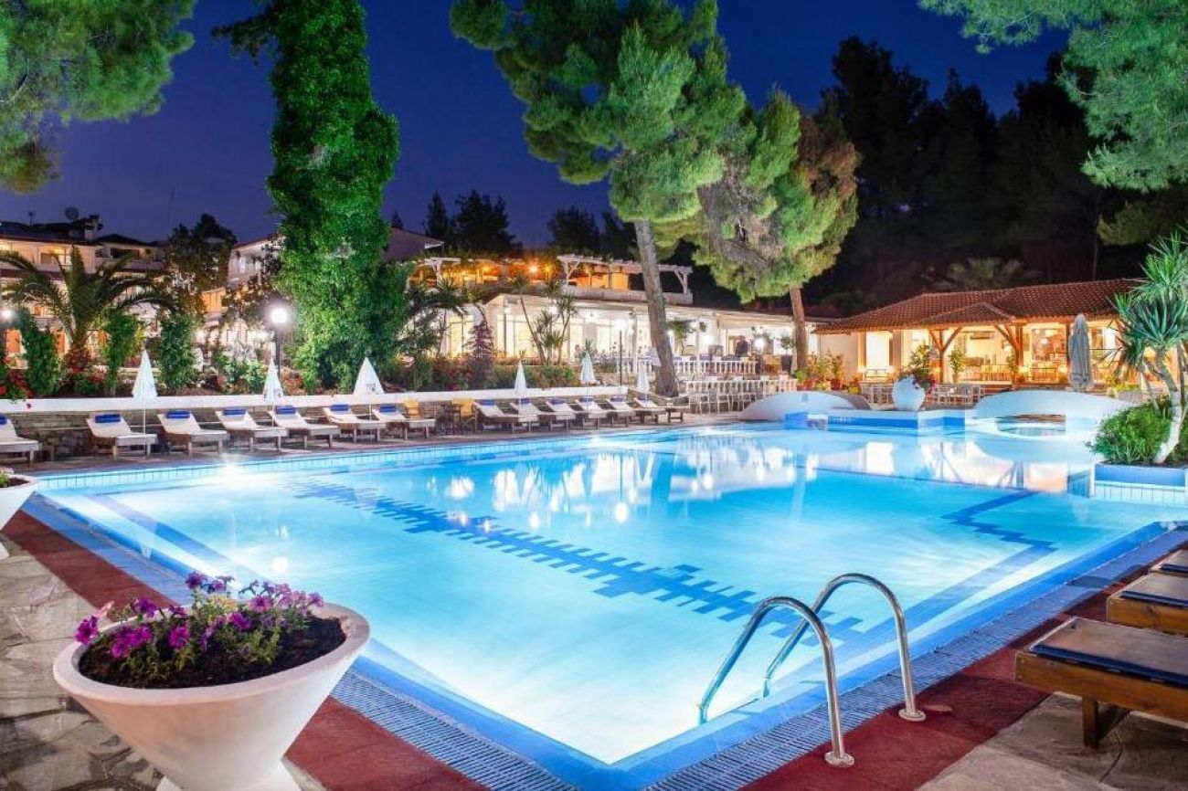 Хотелът се намира на брега на морето, сред добре поддържана зелена територия, където можете да се отпуснете с чаша леденостудена мента със спрайт. Центърът на селцето Никити е на 3 км, Метаморфоси е на 2,5 км.
