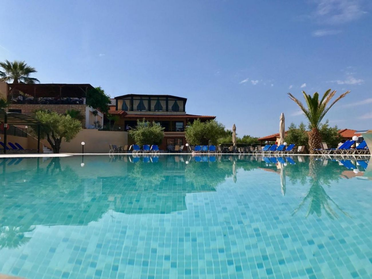 Основен ресторант, бар, 2 открити басейна, сауна, тенис на маса, билярд, плажен волейбол, анимация, гръцки вечери с жива музика 2 пъти в седмицата), лекар, магазин, ТВ зала, Wi-Fi (безплатен - на територията на хотела), паркинг. За децата: открит детски басейн, детска площадка, мини клуб (4-12 г.), мини диско, детска анимация. Плаж: пясъчен, собствен. Чадъри и шезлонги на плажа - срещу заплащане.